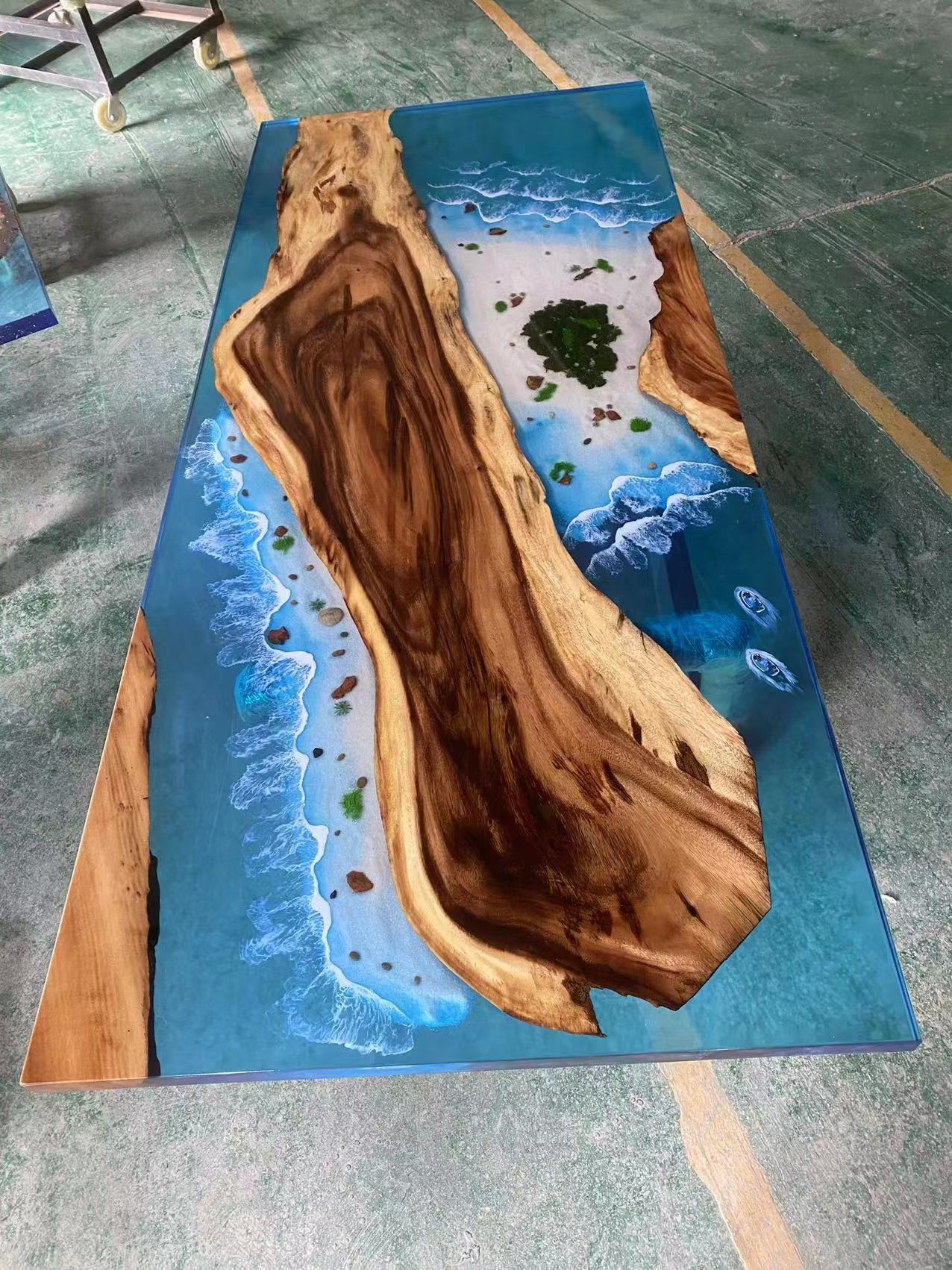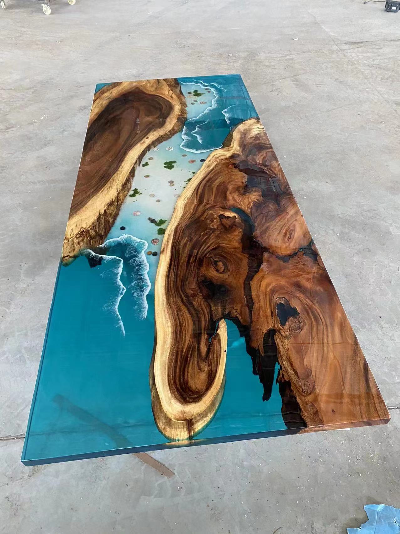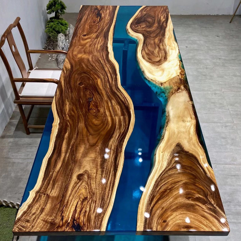 Кросс-бодер эпоксидный смоляной река стол, орех, массив дерева, большой чайный стол, тополь, прозрачный, креативный обеденный стол, волны