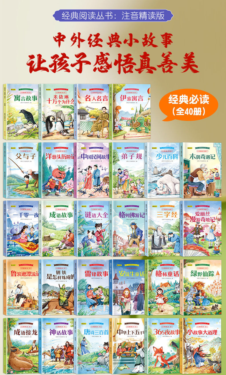 Знаменитая классическая серия чтения 40 томов дополнительных книг для учащихся начальной школы с фонетической версией и аудиочтением