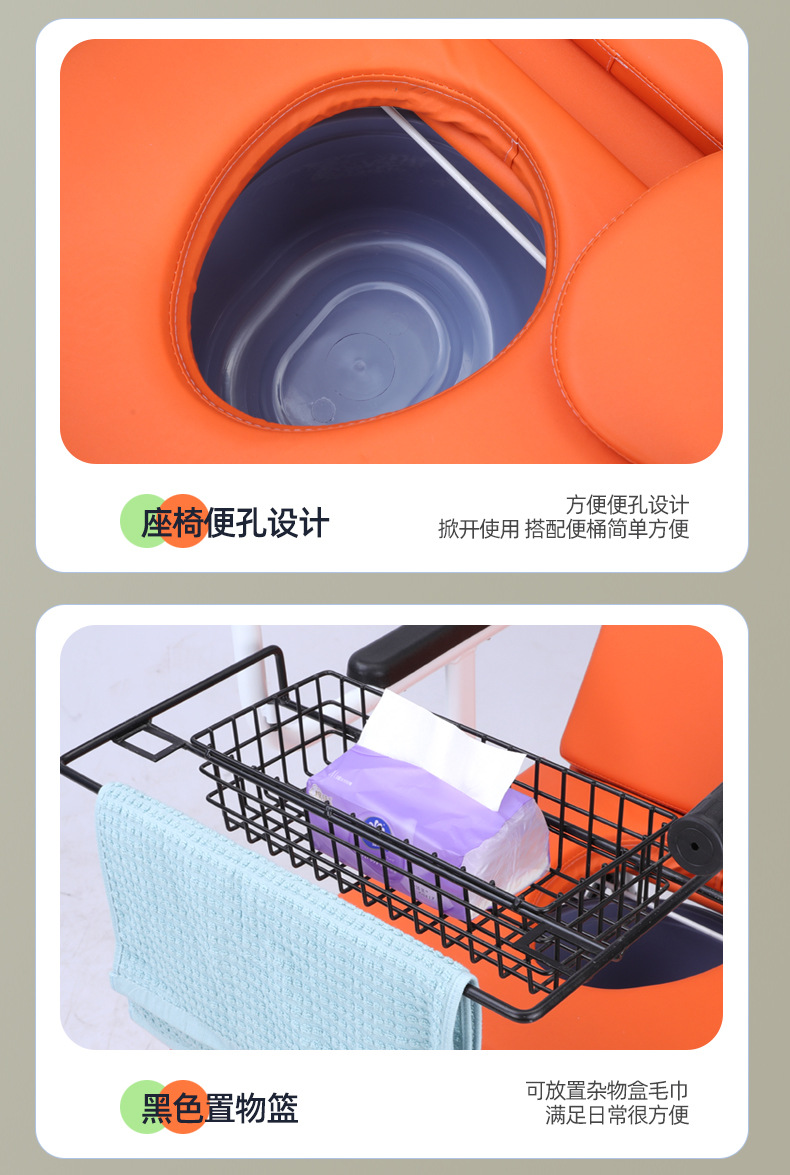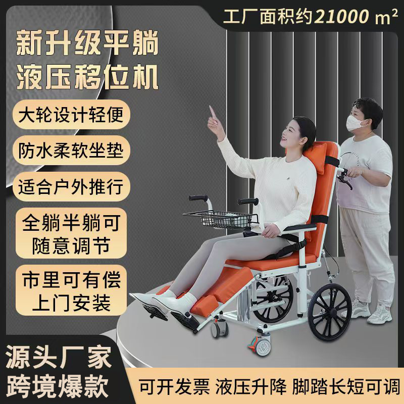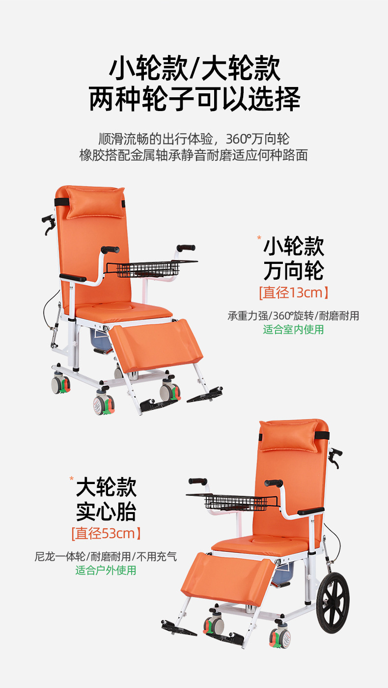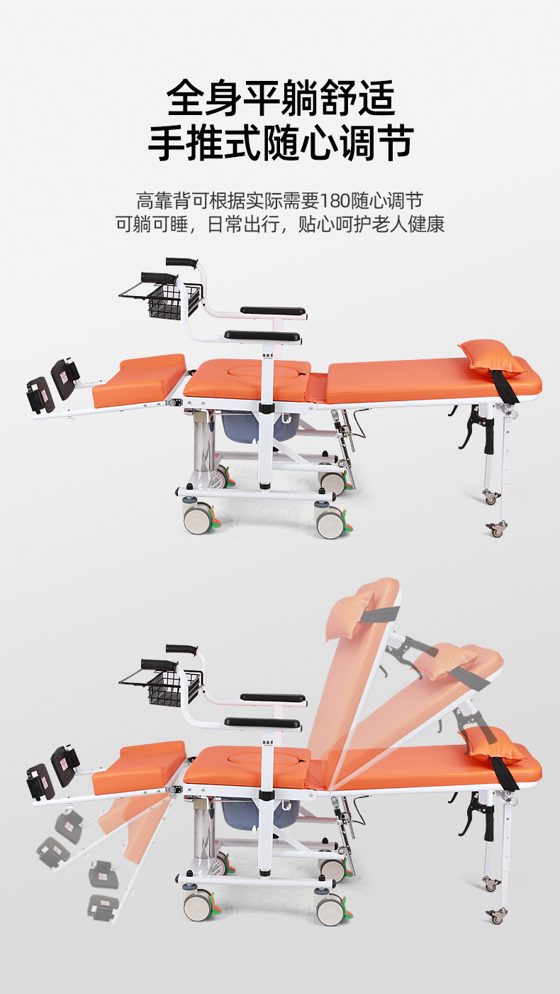 Can replace the slot machine of wheelchairs The large wheel flat-nosing slot machine can be pushed outdoors to lie flat and half-ly in the bath, dining in the toilet, english level 4