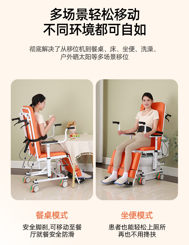 Sit, lie down and walk three-position lift Fully reclining anti-fall repositioning machine. the backrest can be adjusted at multiple angles. it comes with a slide step for easy repositioning. true hands-free lifting