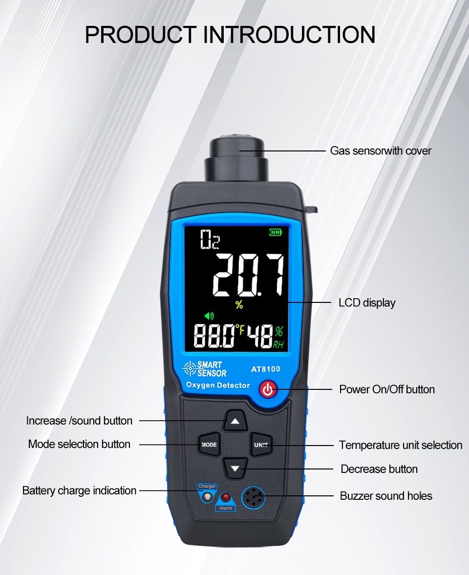 Датчик кислорода Xima Ar8100 Содержание кислорода O2 Концентрация сигнализация Портативный газовый детектор