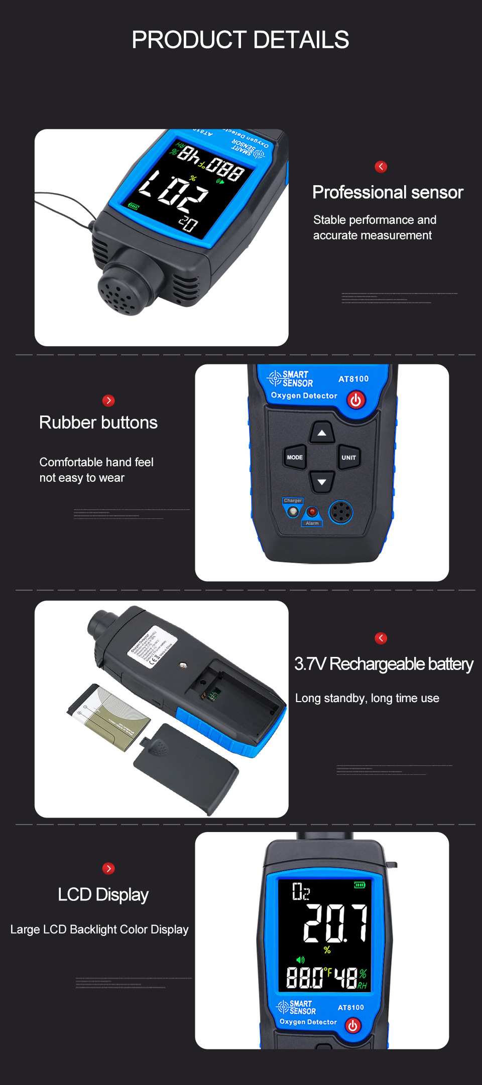 Acoustic, optical double alarm, can set the alarm value, an alarm |