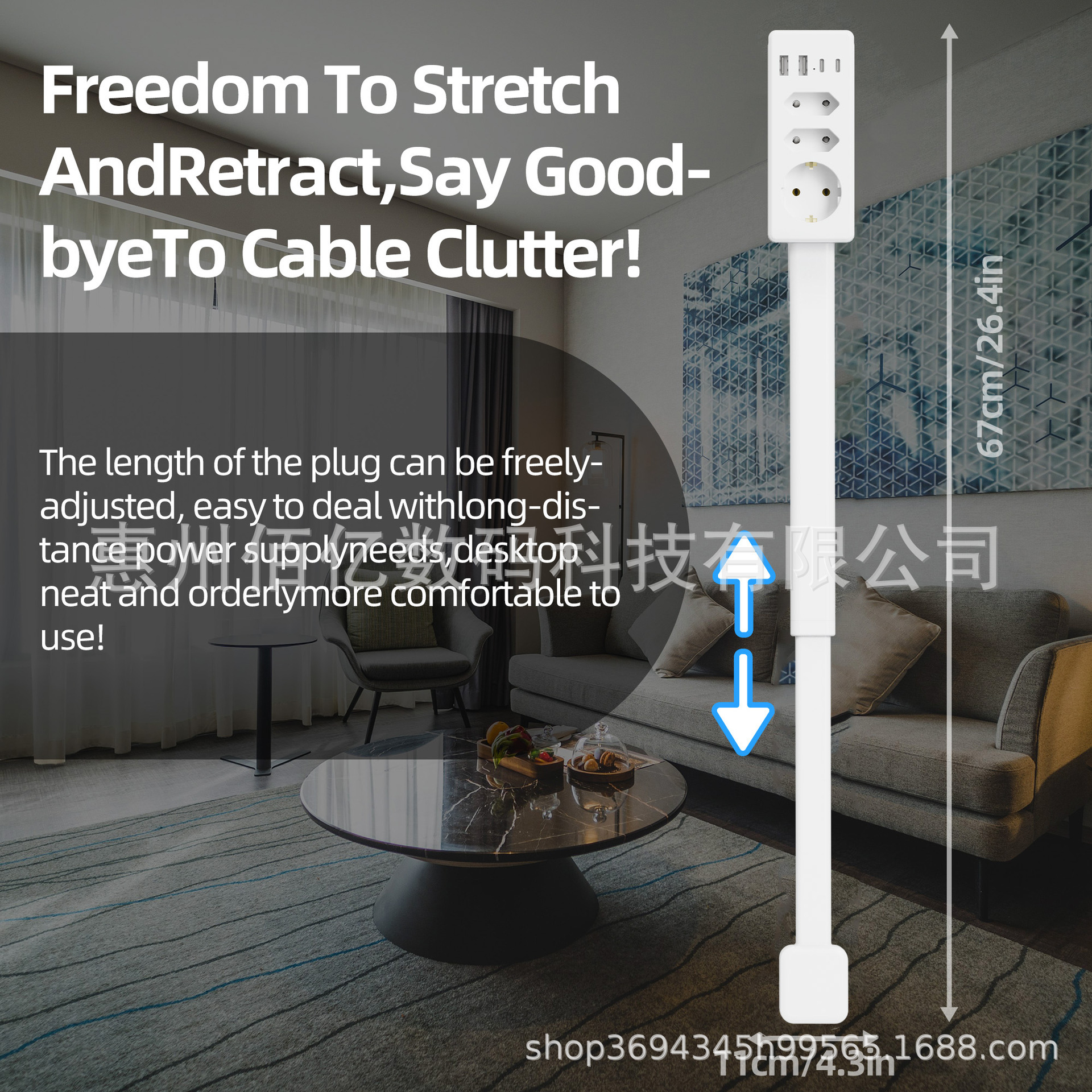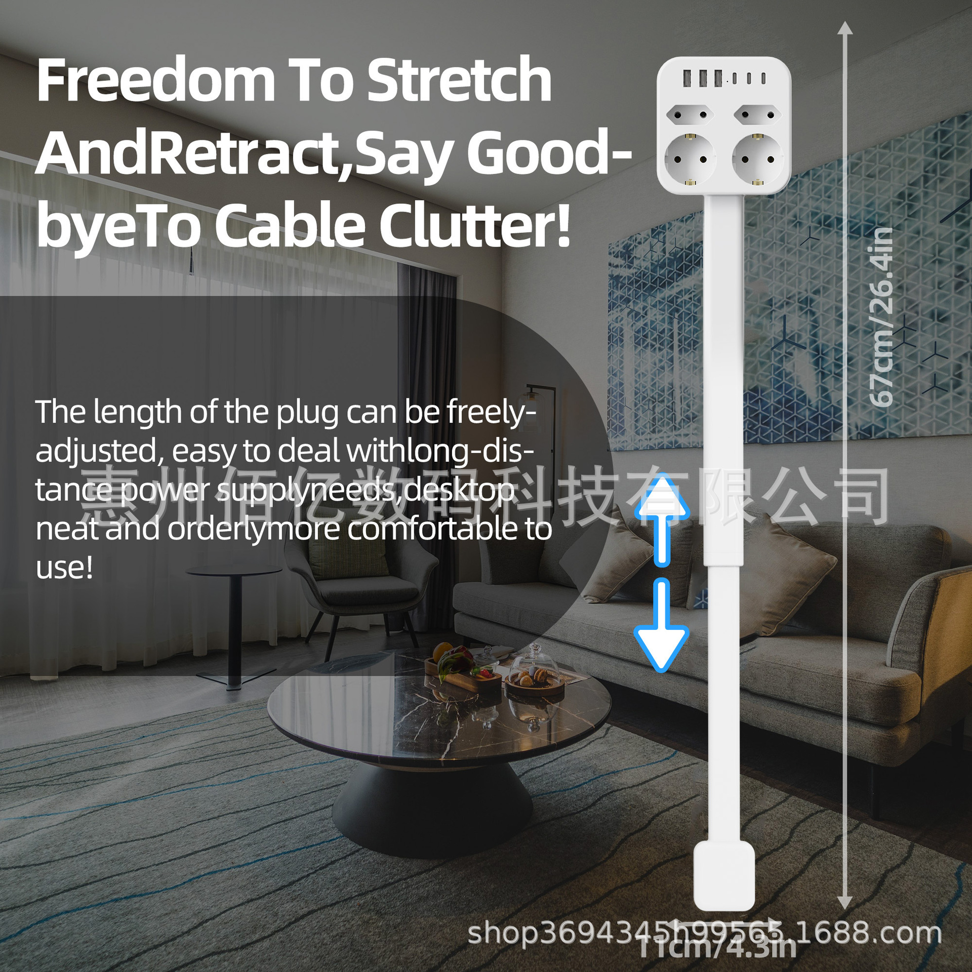 产品尺寸:收缩长43.5cm,拉伸长70cm,宽4.5,高5.5,插头高度7.8cm,净重354g