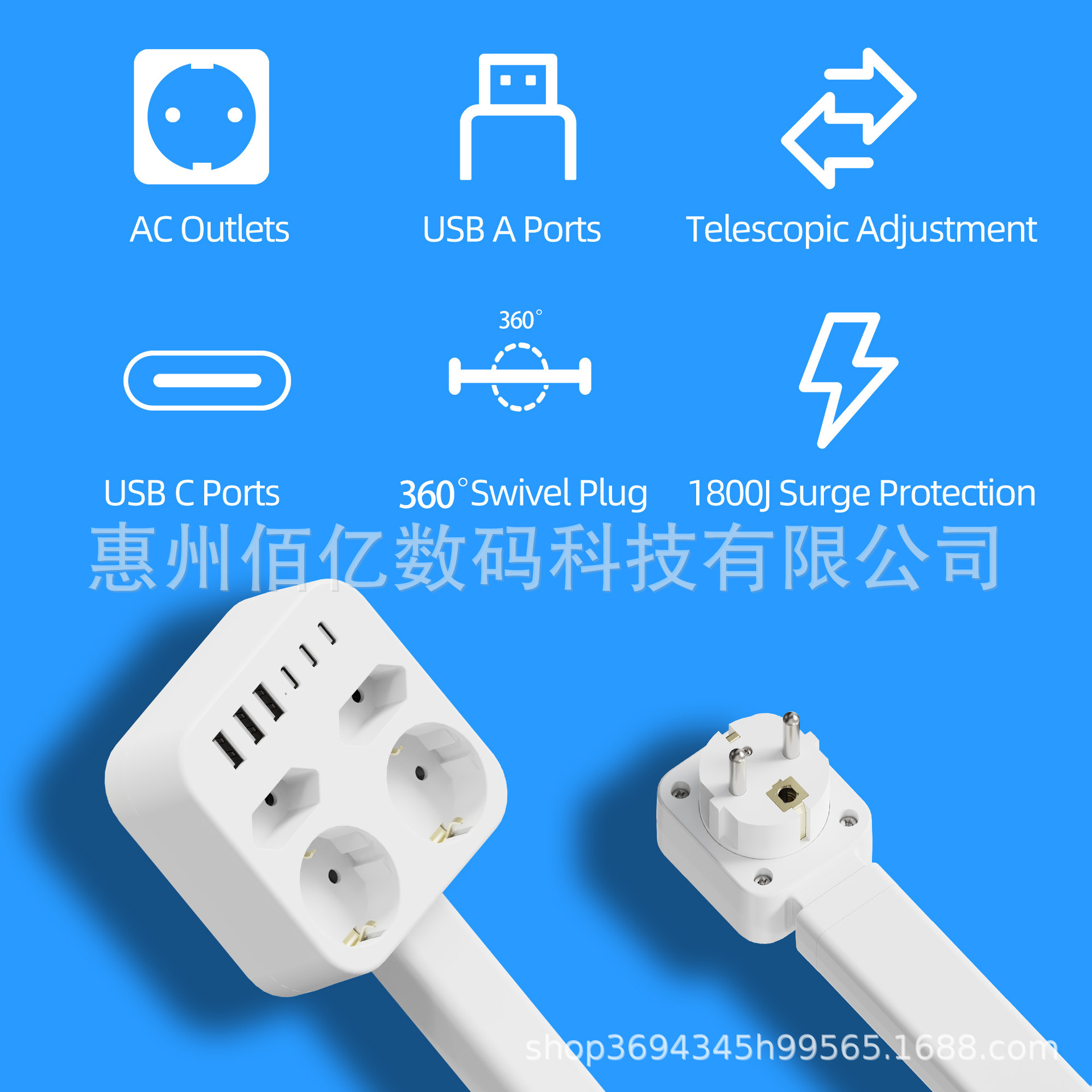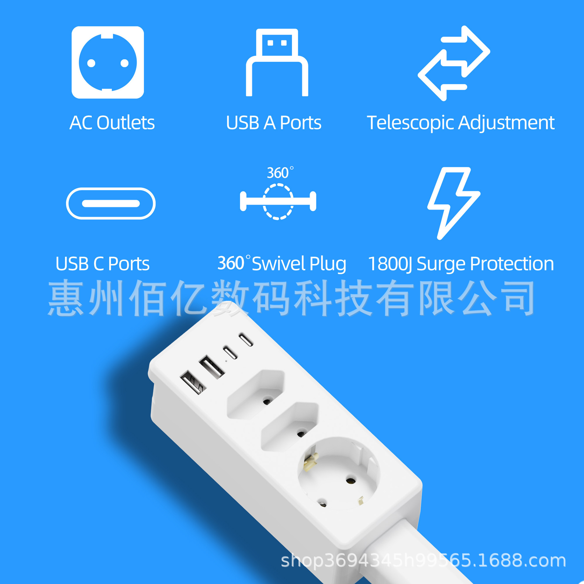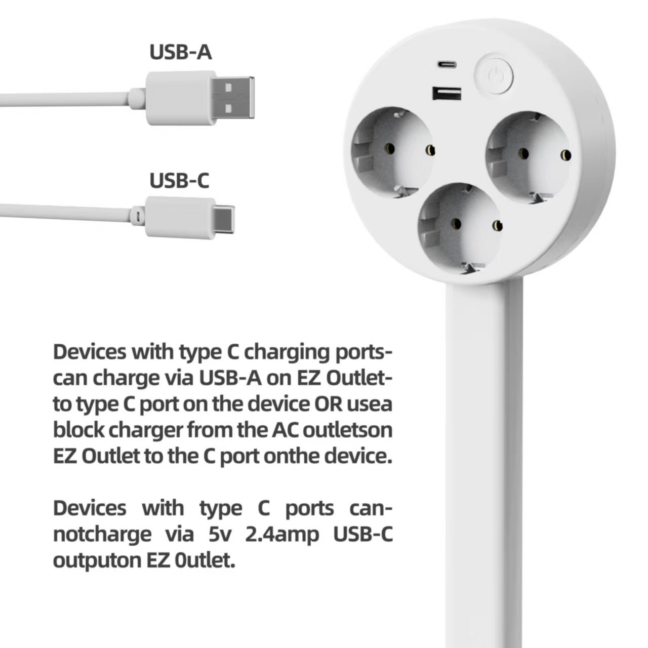 Удлинитель Power Outlet с USB-A и USB-C интерфейсами и 2 AC розетками, удлиняемыми до 70 см