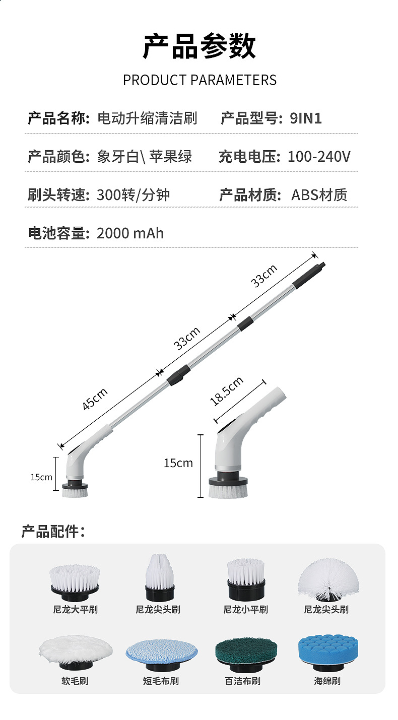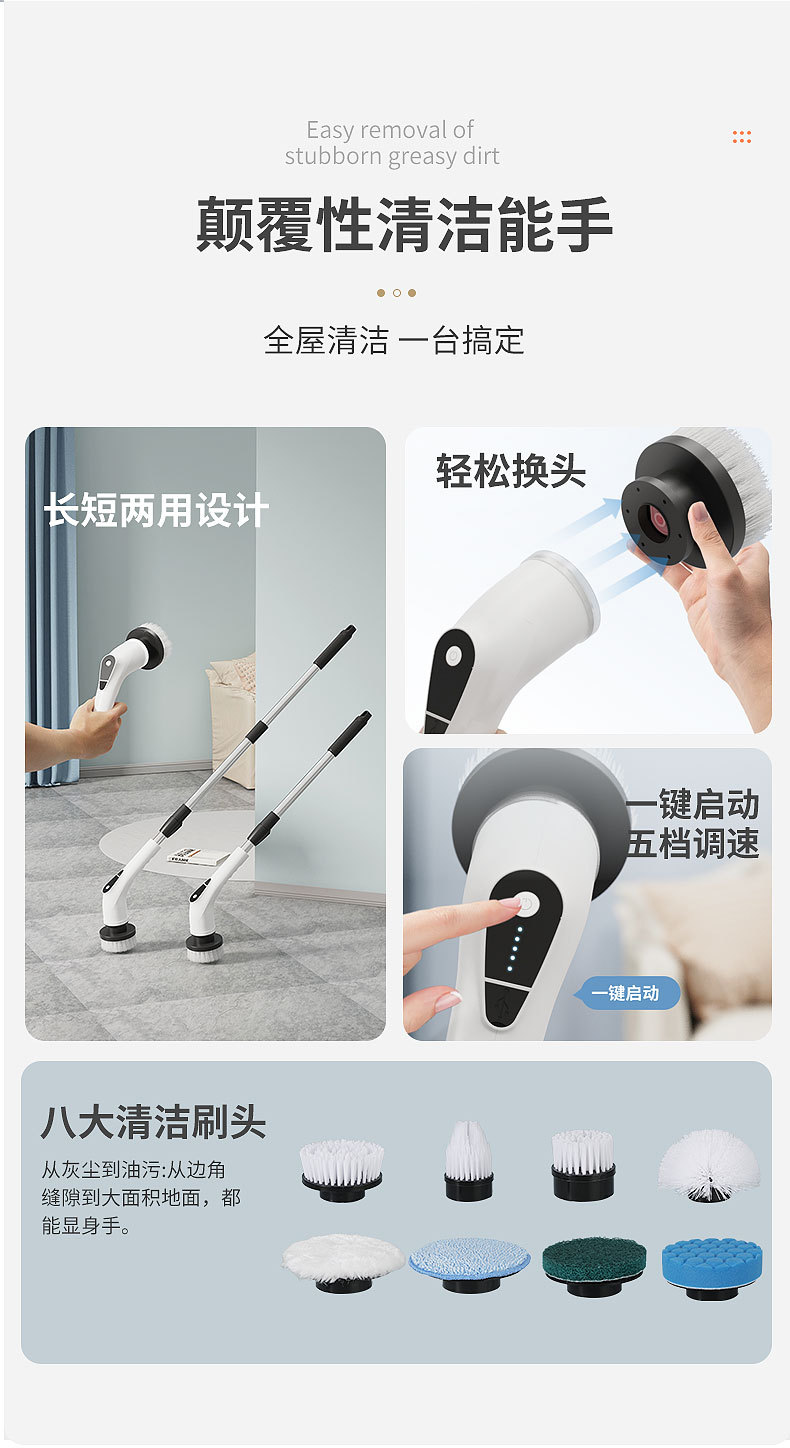 Электрическая чистящая щетка с длинной ручкой, беспроводная, многофункциональная, для кухни и туалета