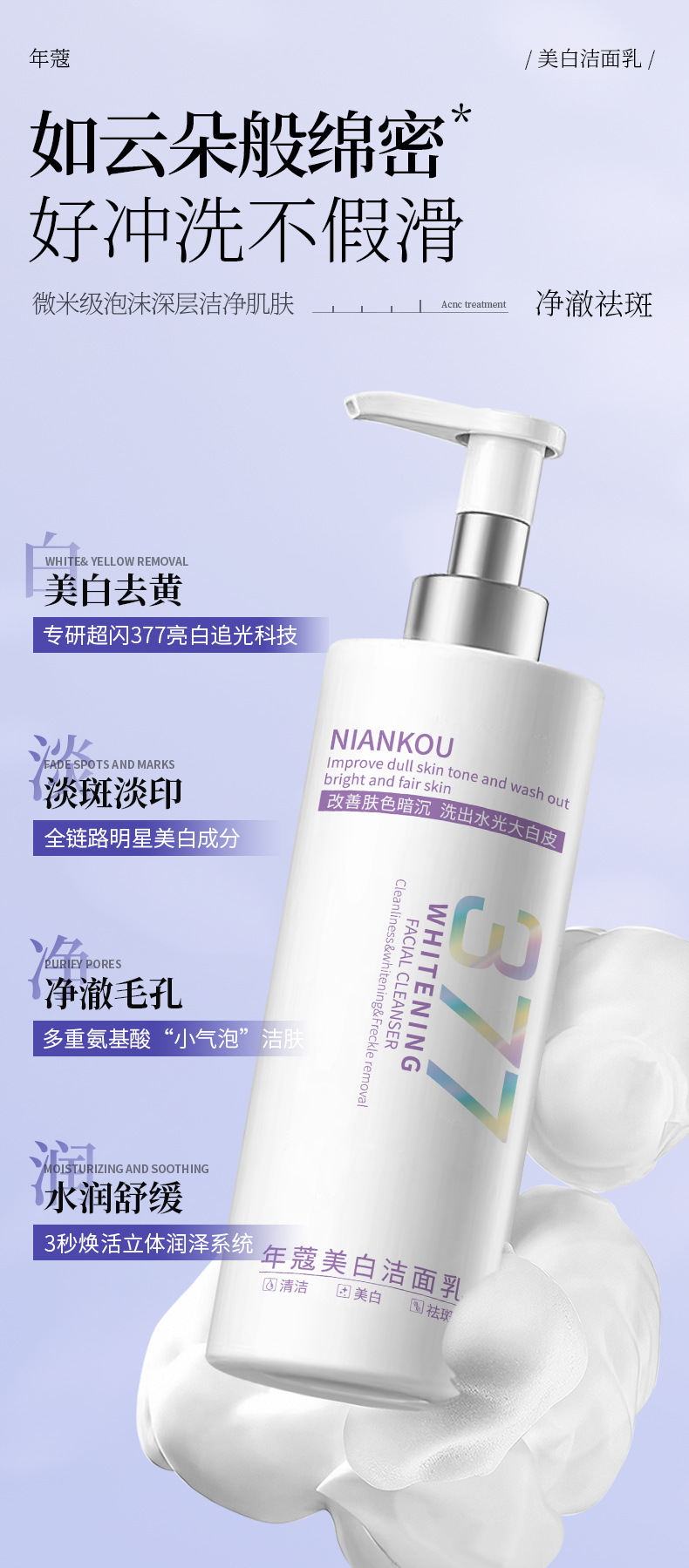 Название продукта Nian kou purple 377 press type whitening facial cleanser