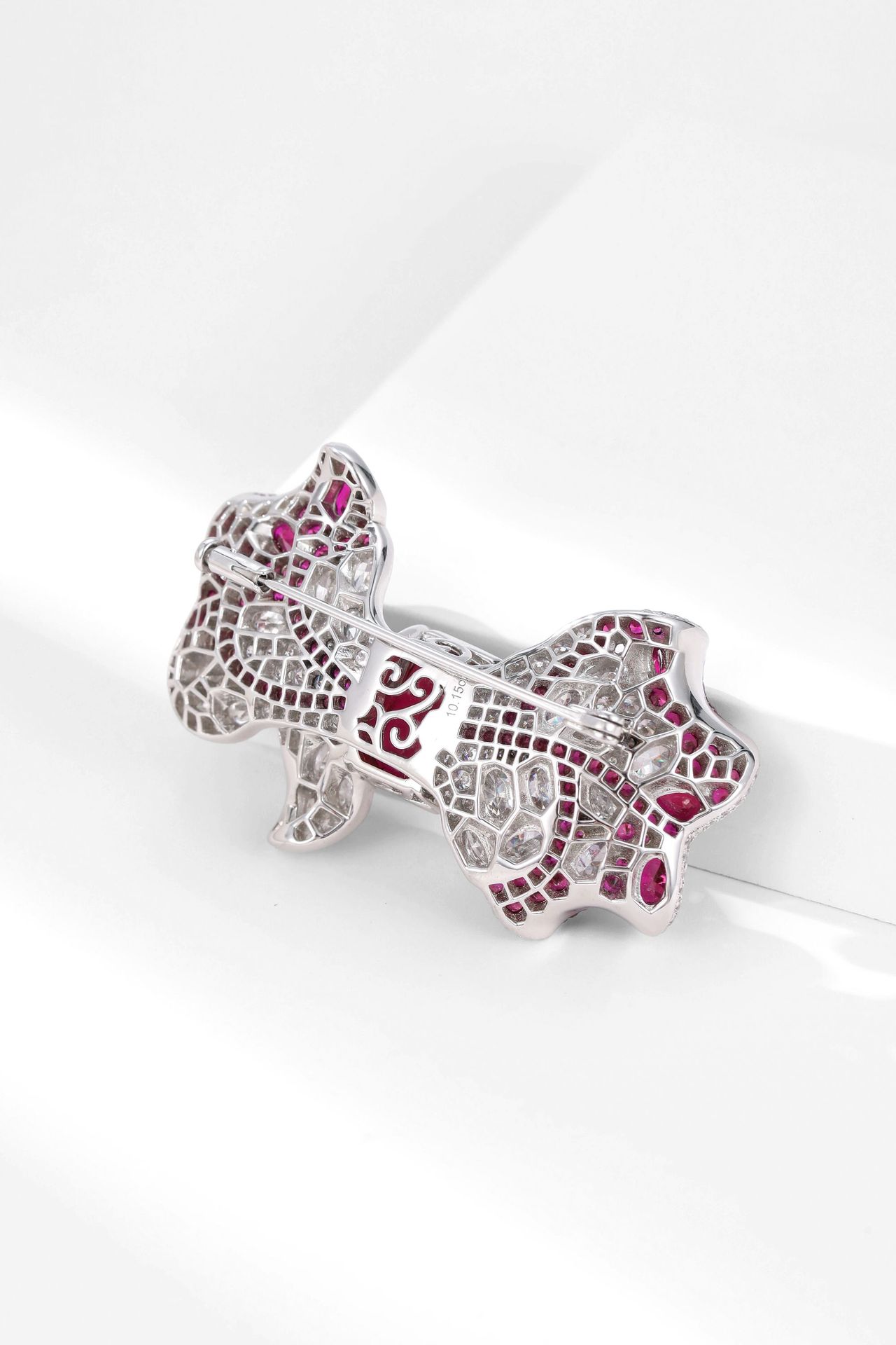 Брошь с рубином цвета голубя Новая Лук Высококачественная Элегантная Полная Алмазов Прочная Одежда S925 Серебро