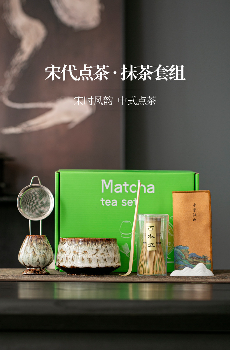 跨境专供亚马逊ins风日式陶瓷点茶抹茶碗茶筅茶艺套装 百本立