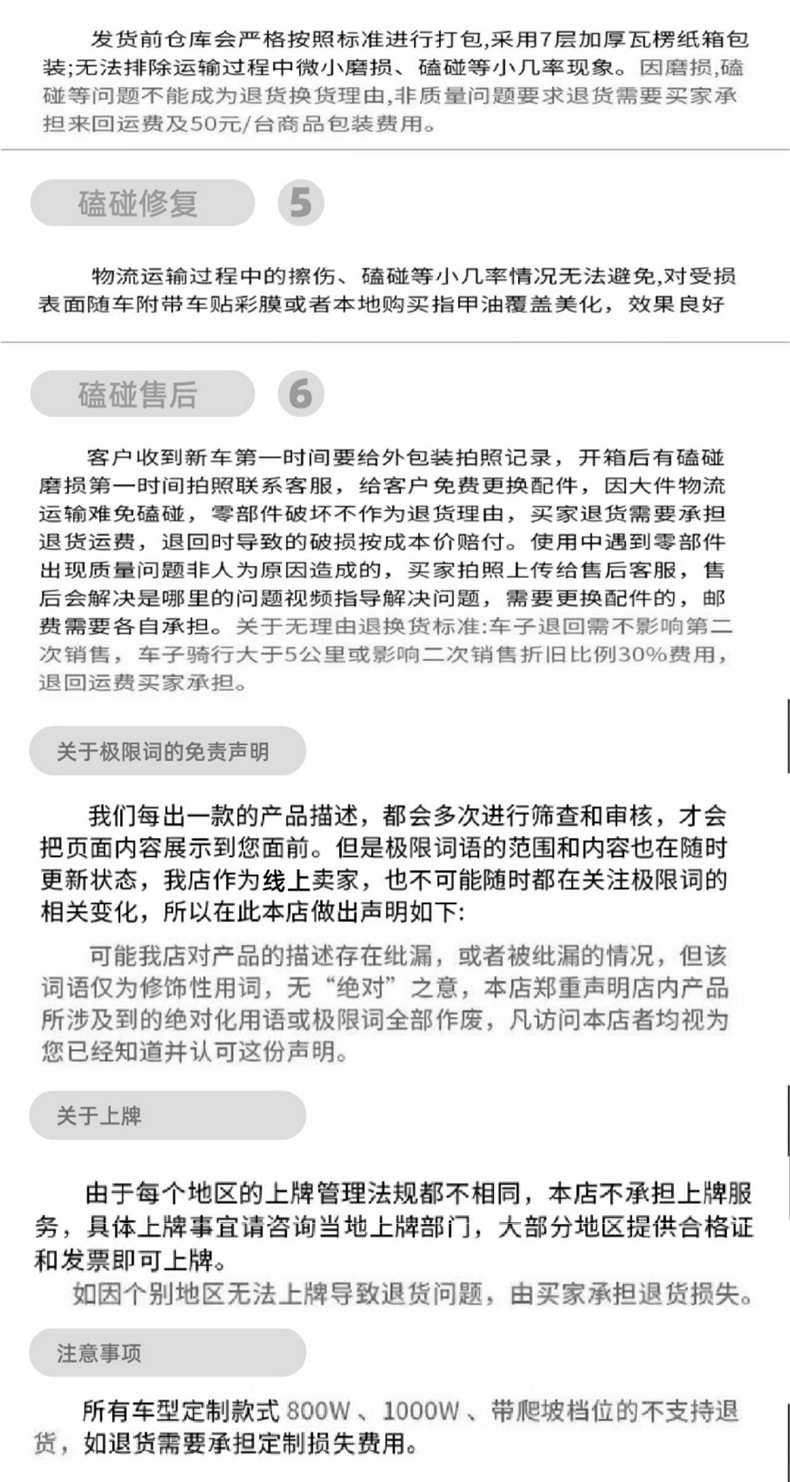 📦 | Upgrade to 1000w motor and contact customer service to make up for the difference | ¥8118.0 / ≈ 97 912 ₽ | 0 | 6026438619003 |