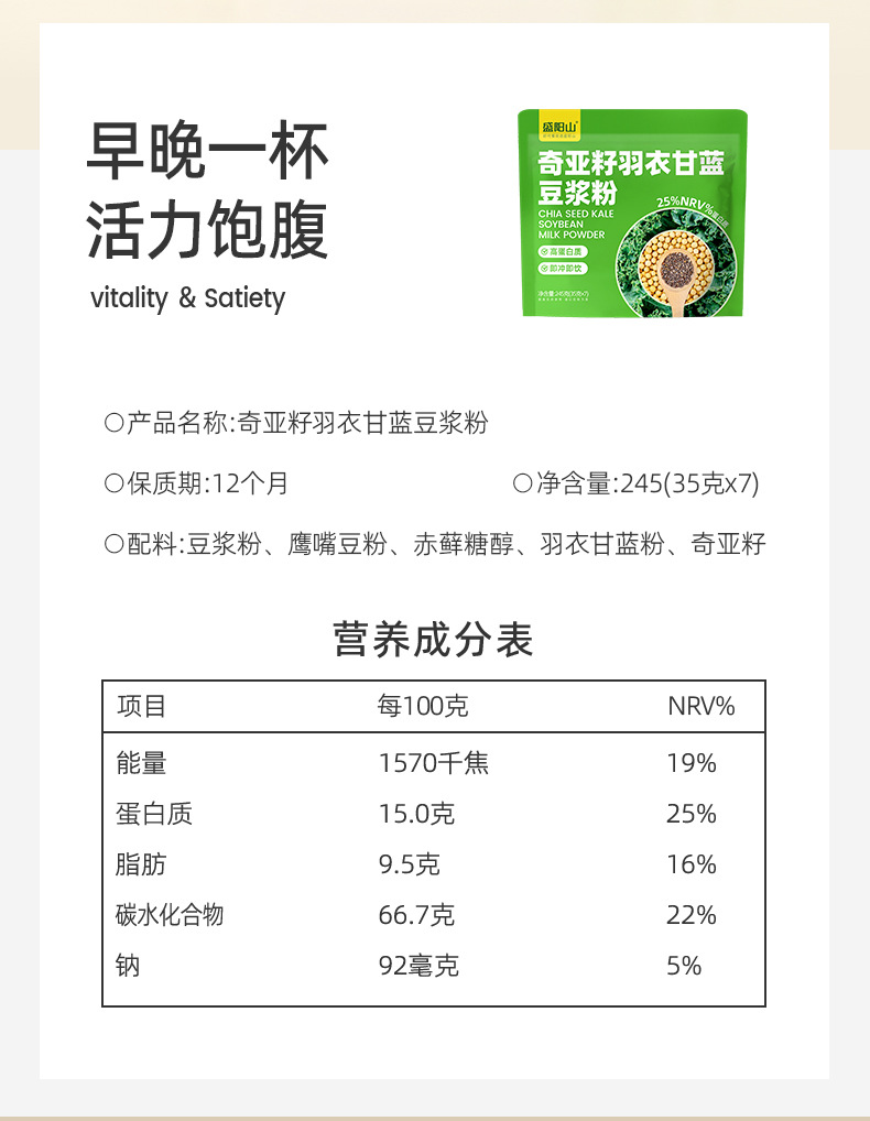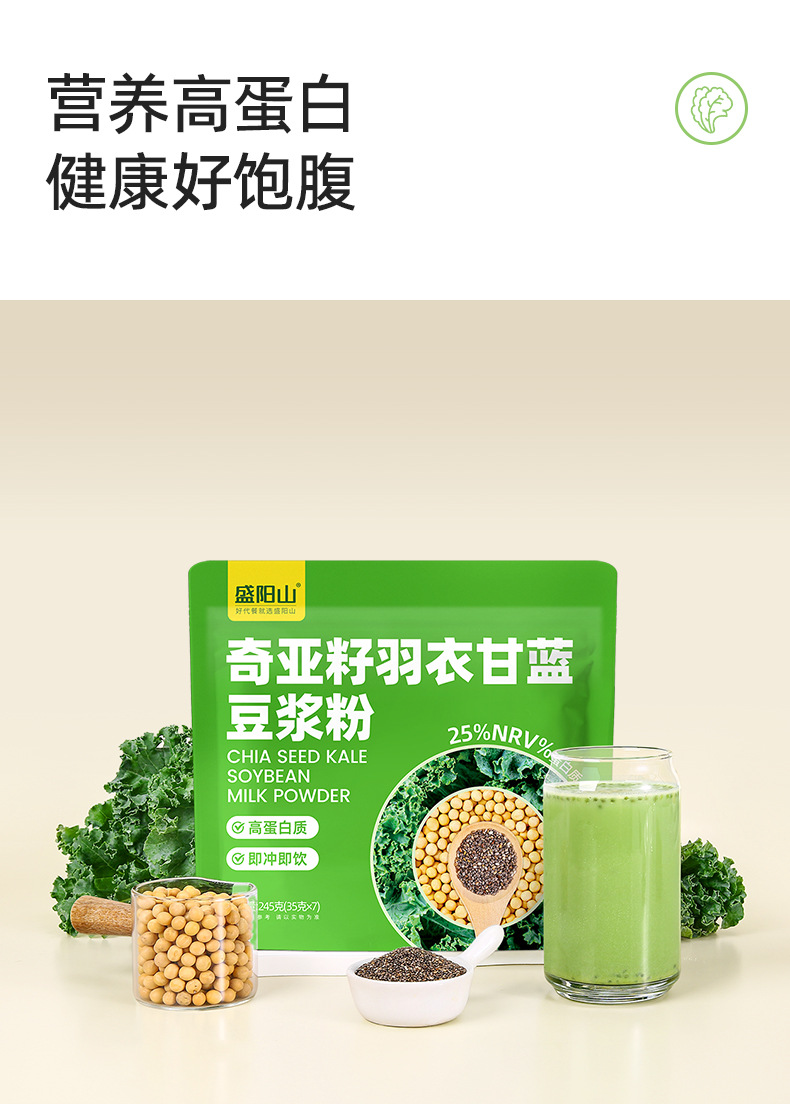 Порошок соевого молока с семенами чиа и капустой 245г, готовая к употреблению, высокобелковая замена питания