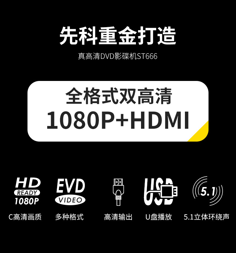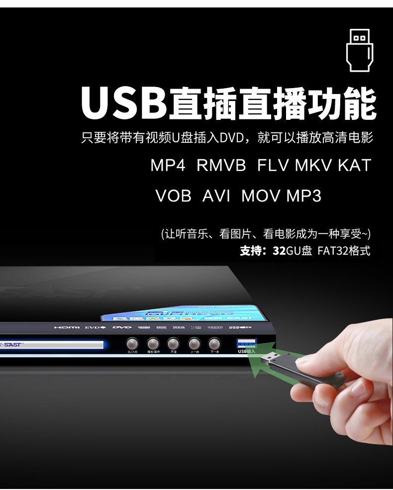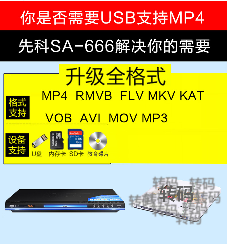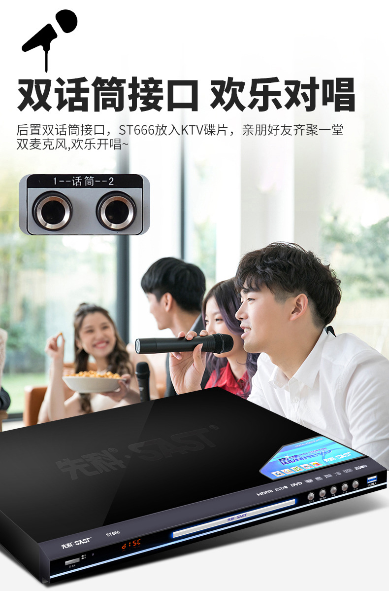 Sast/Xianke SA-666 DVD-плеер, домашний DVD-плеер, VCD, высокое разрешение, MP4-плеер