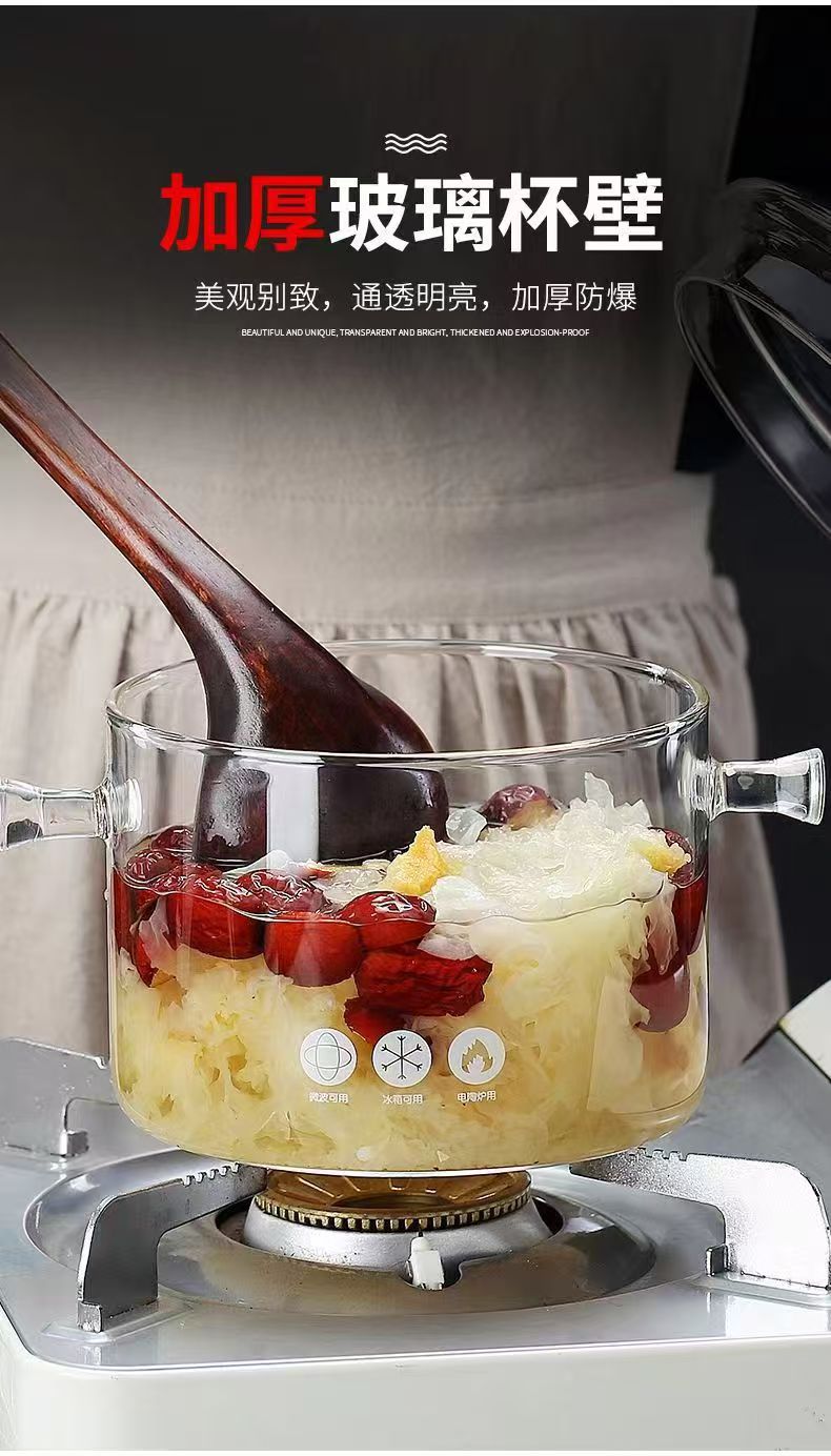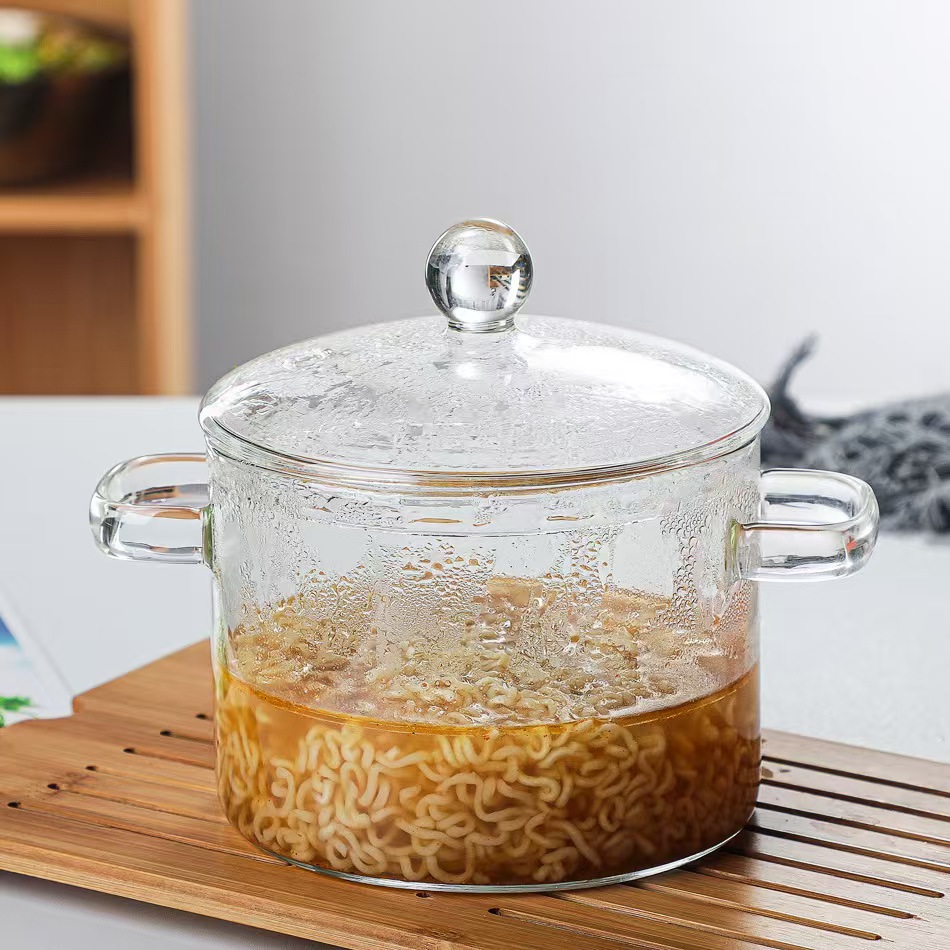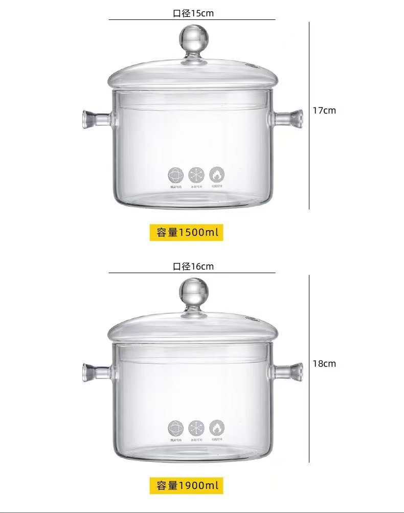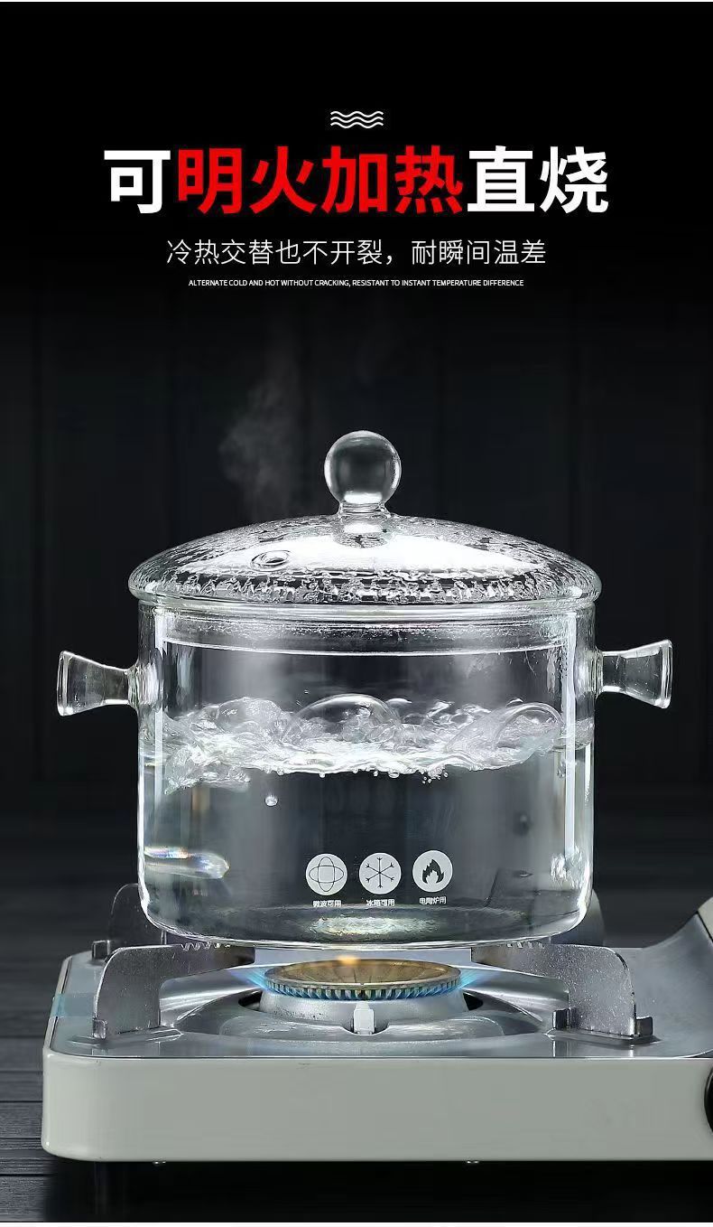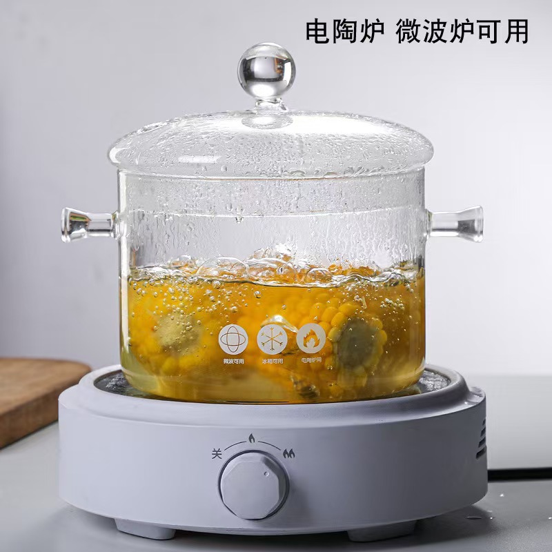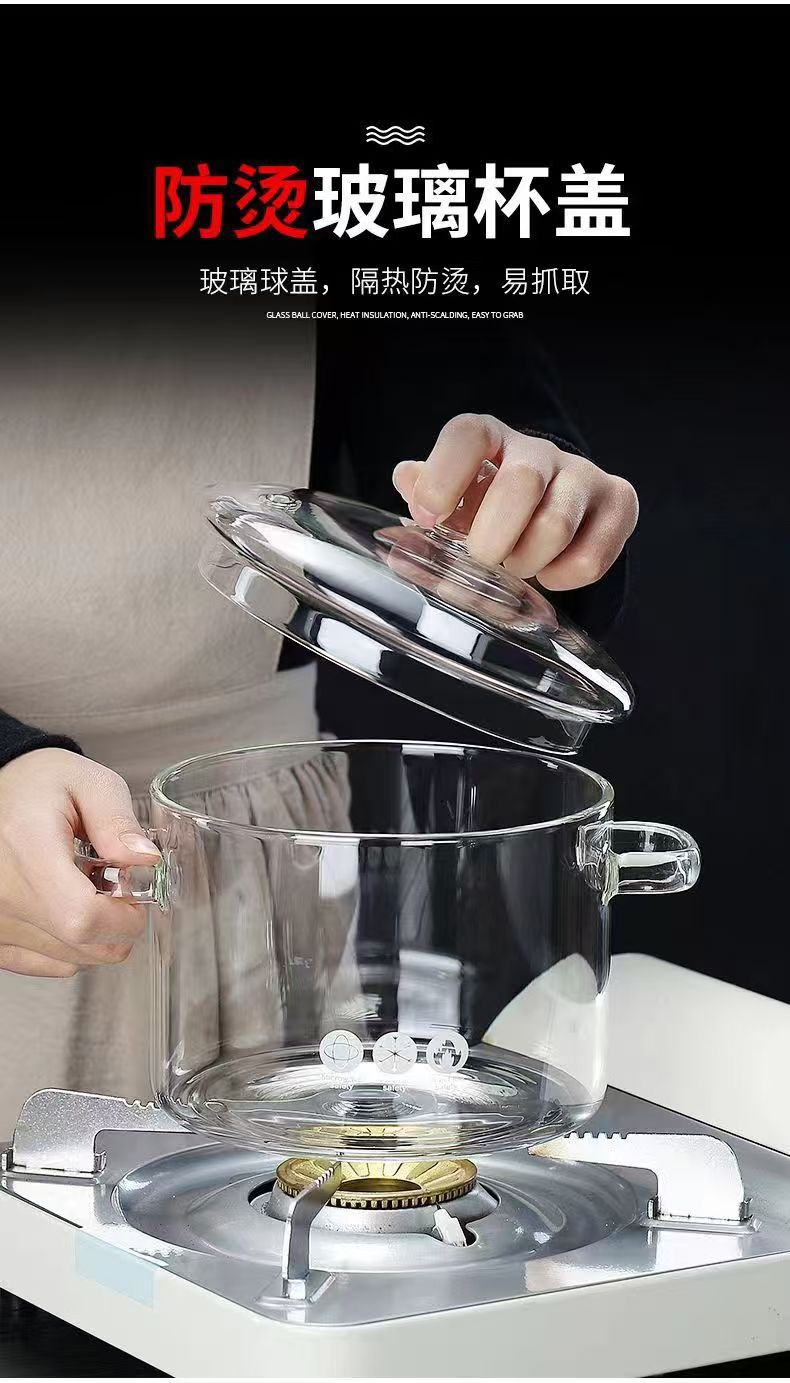 Кастрюля из боросиликатного стекла, для электрической керамической плиты, с крышкой, утолщённая
