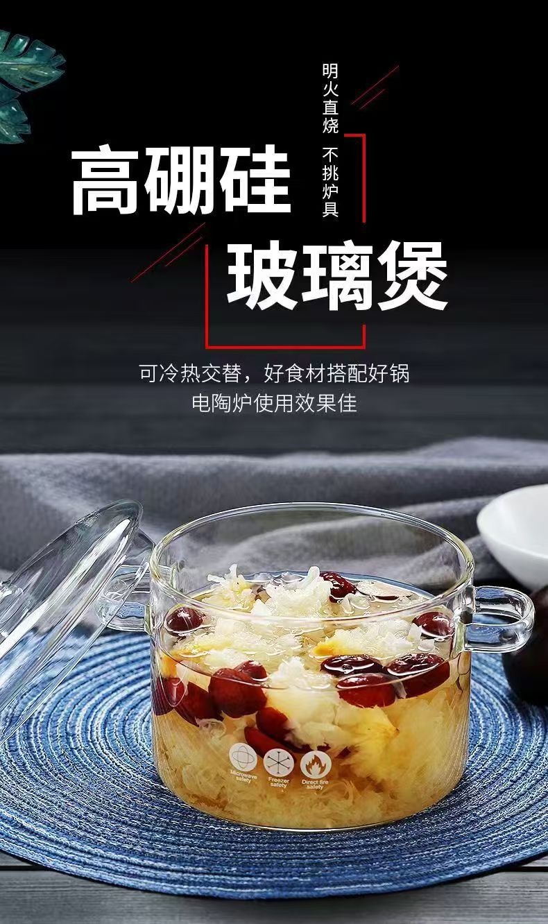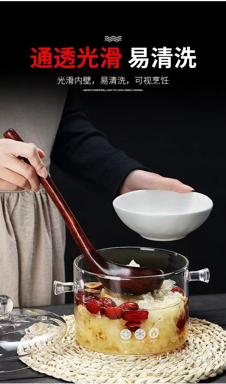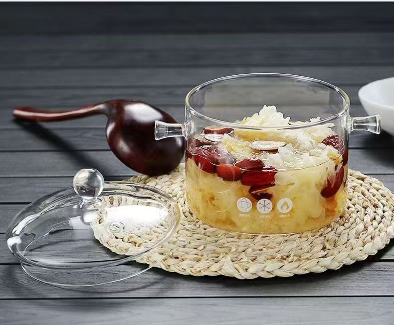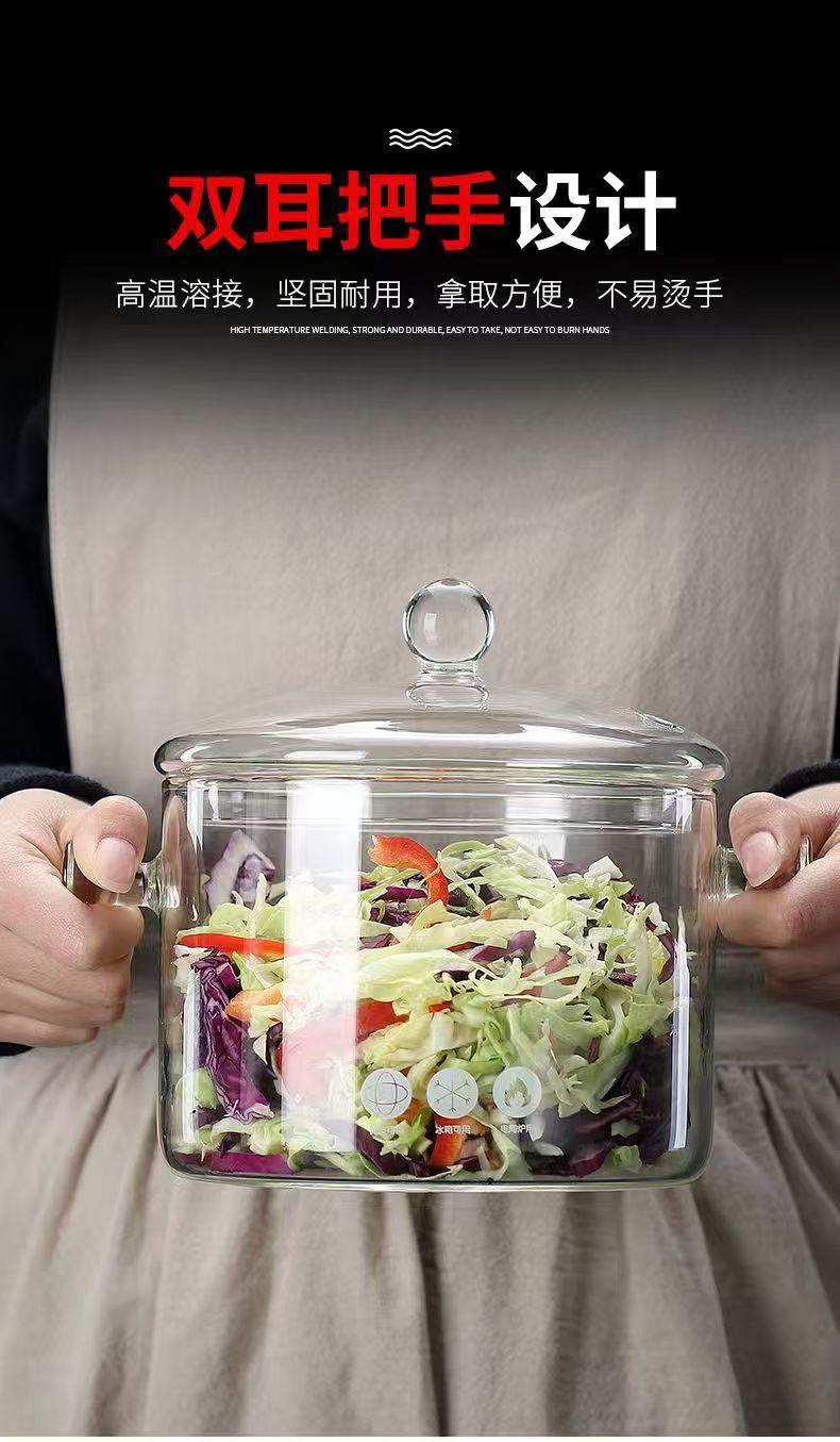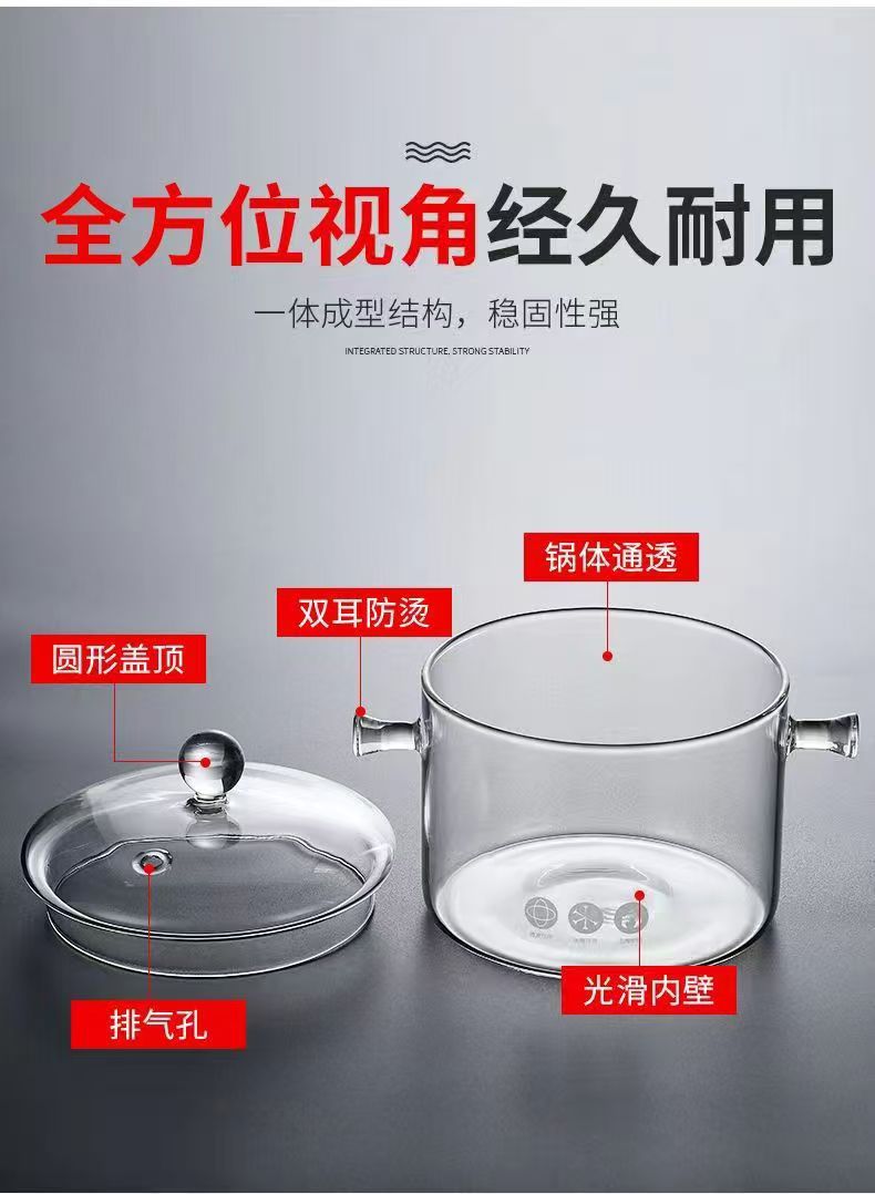 Кастрюля из боросиликатного стекла, для электрической керамической плиты, с крышкой, утолщённая