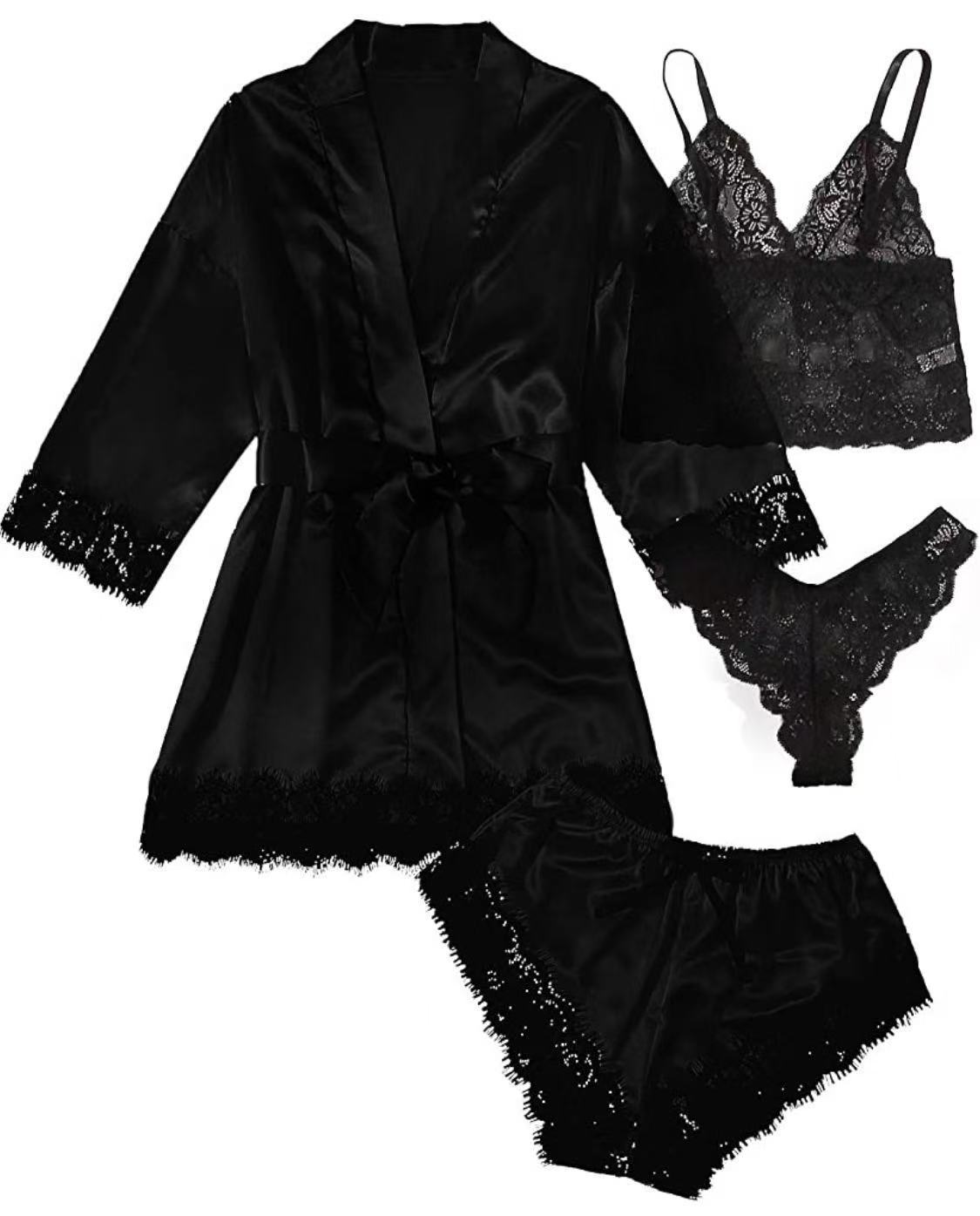 Женский комплект ночной одежды из кружева, сексуальные домашние пижамы, четырехпредметный набор