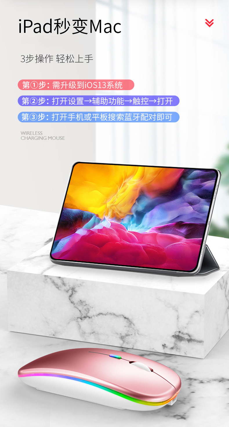 Оптовая продажа завода 189 светящаяся беспроводная мышь Bluetooth тихая подходит для мобильного телефона iPad ноутбука двойного режима скользящая мышь