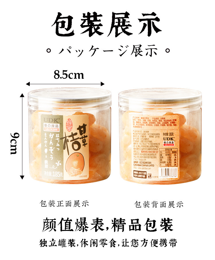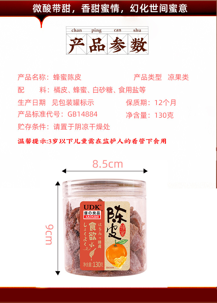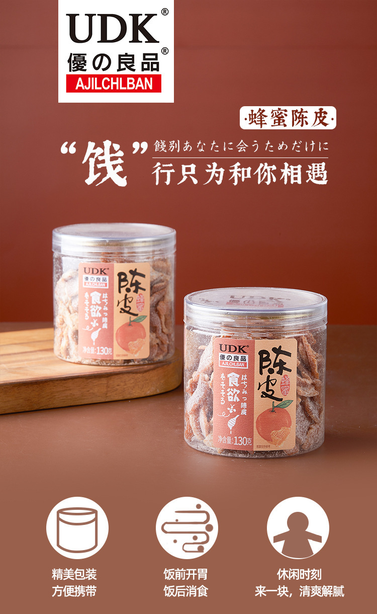 ![]() | Honey tangerine peel 130g | 1шт: ¥8.80, 24шт: ¥8.50 | 9057 | 5858686832650 | |