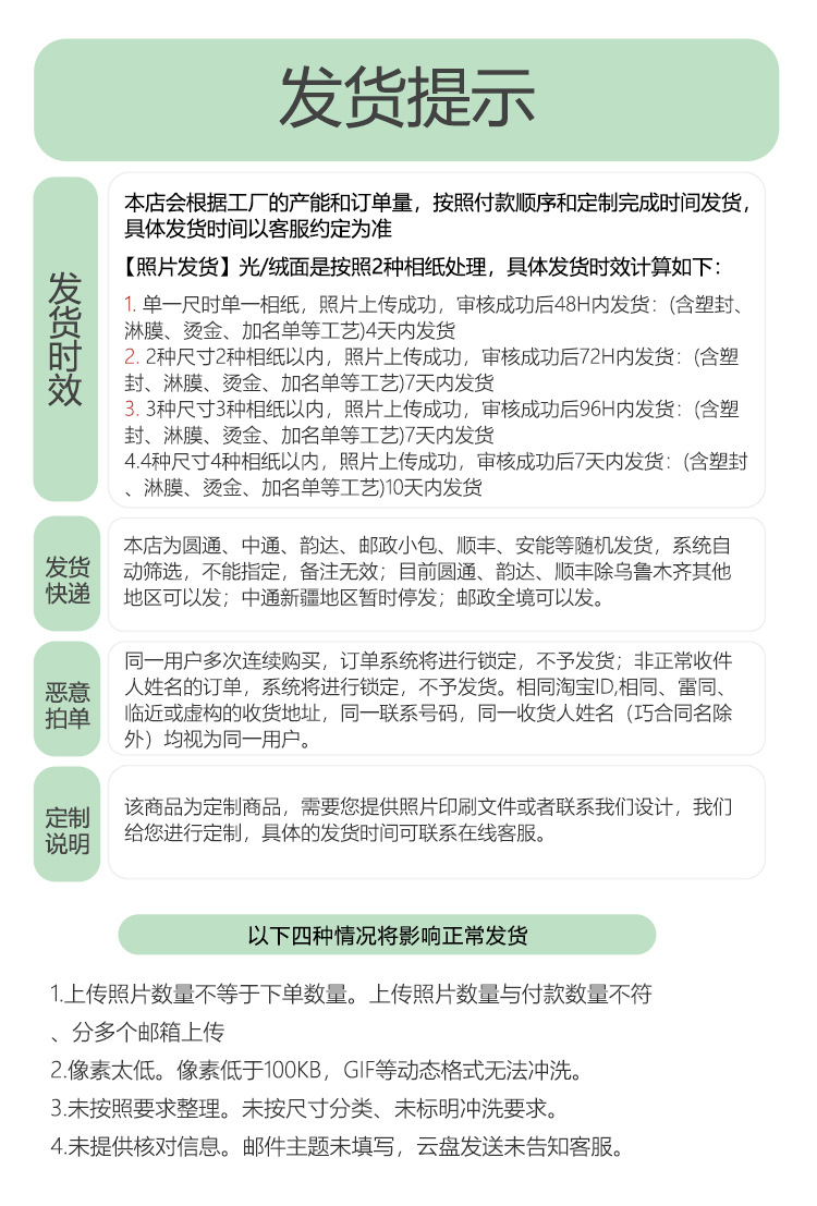 ![]() | Photo Developing | 4inch (with white border) | ¥0.23 / ≈ 3 ₽ | 2900 | 5858749140775 | |