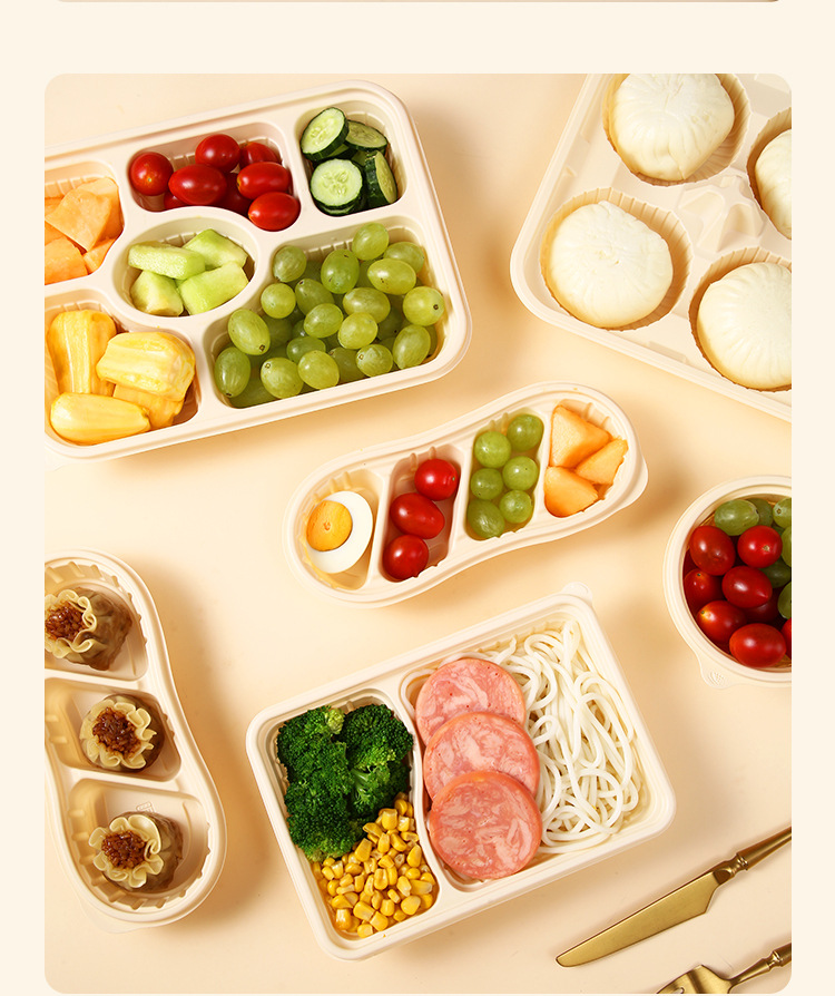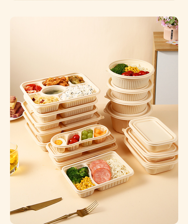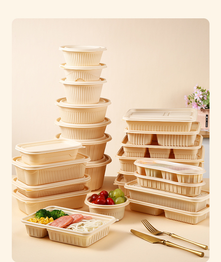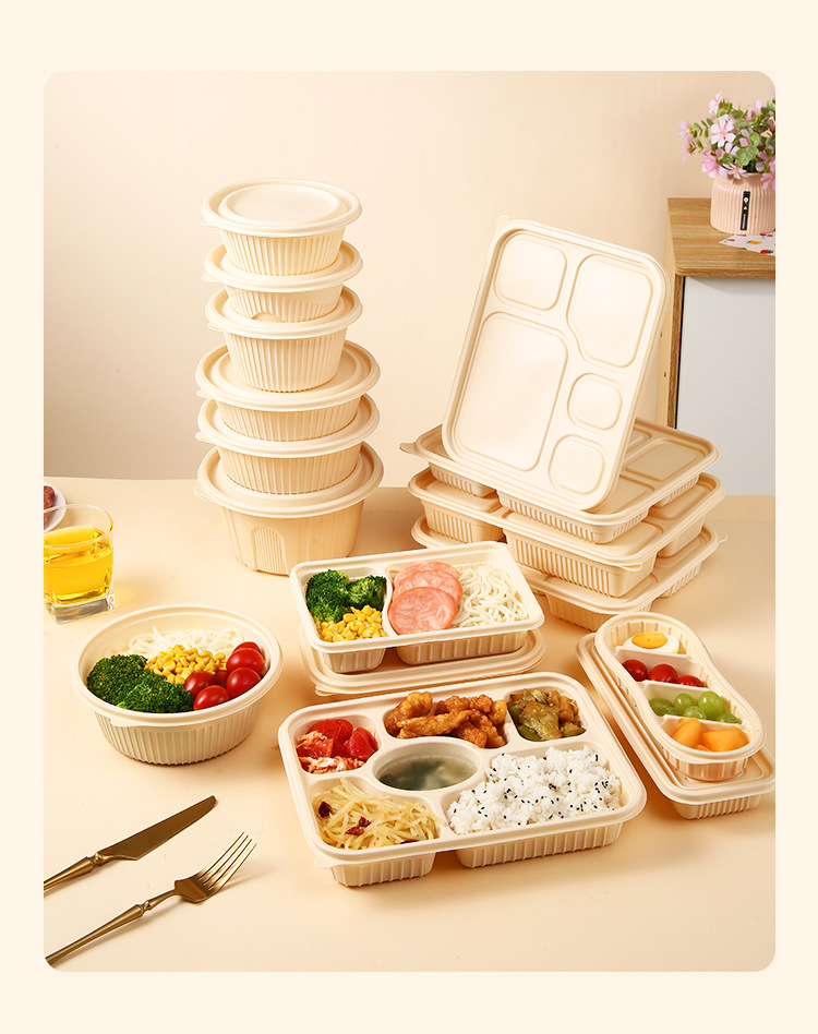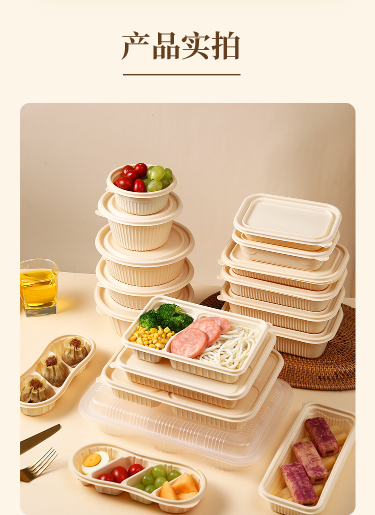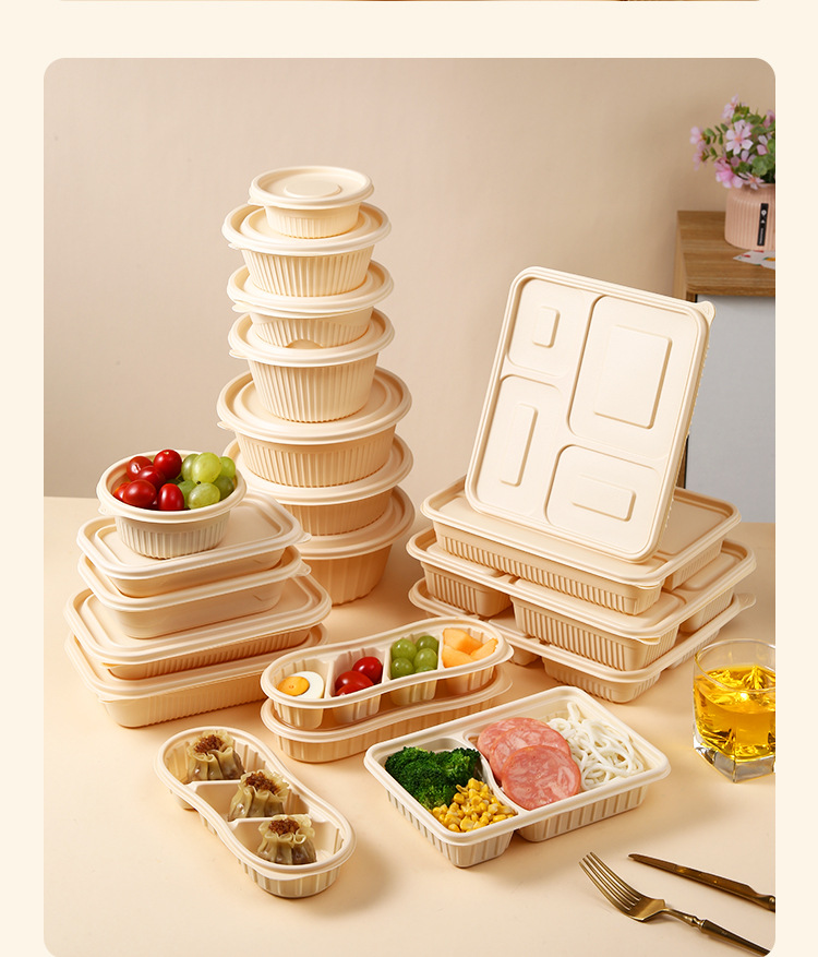 Одноразовая посуда из кукурузного крахмала, биоразлагаемая, для упаковки на вынос, круглые и квадратные, для ланч-боксов, кейтеринга, пригодна для микроволновки