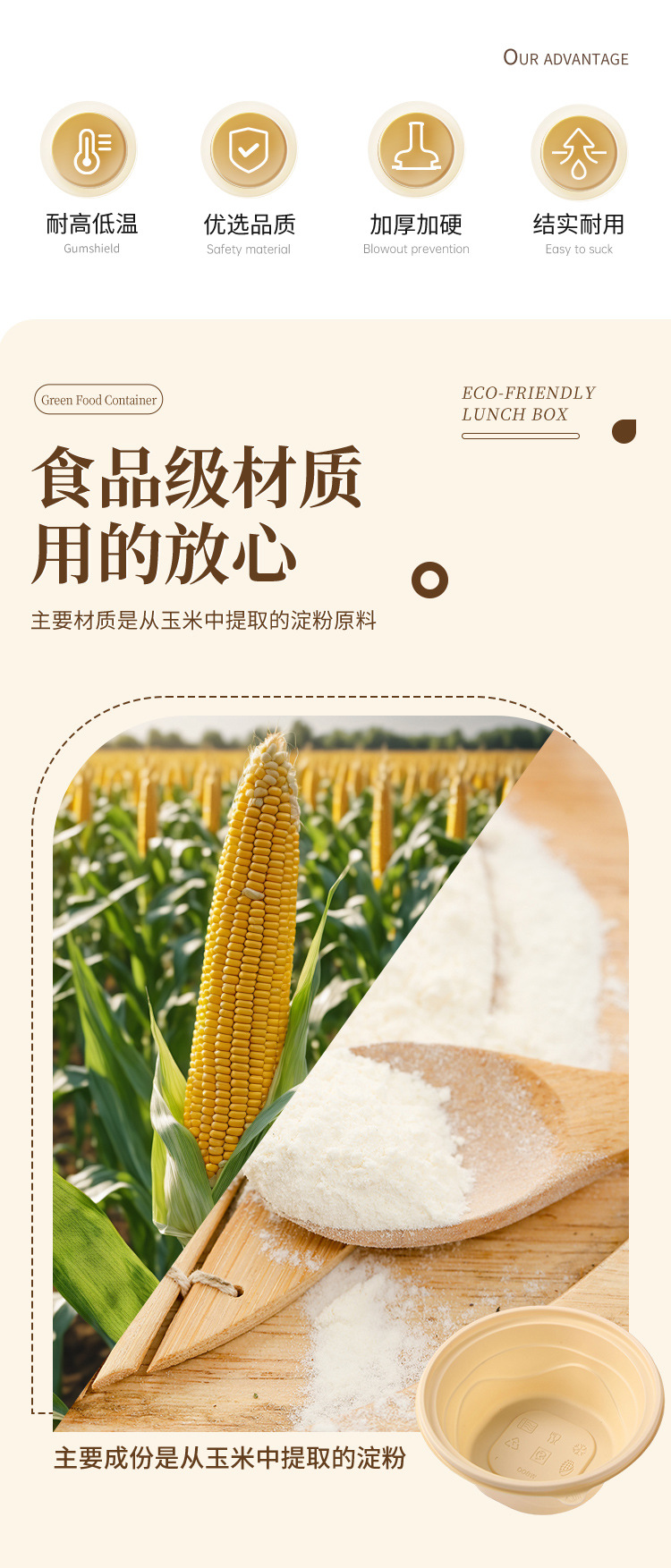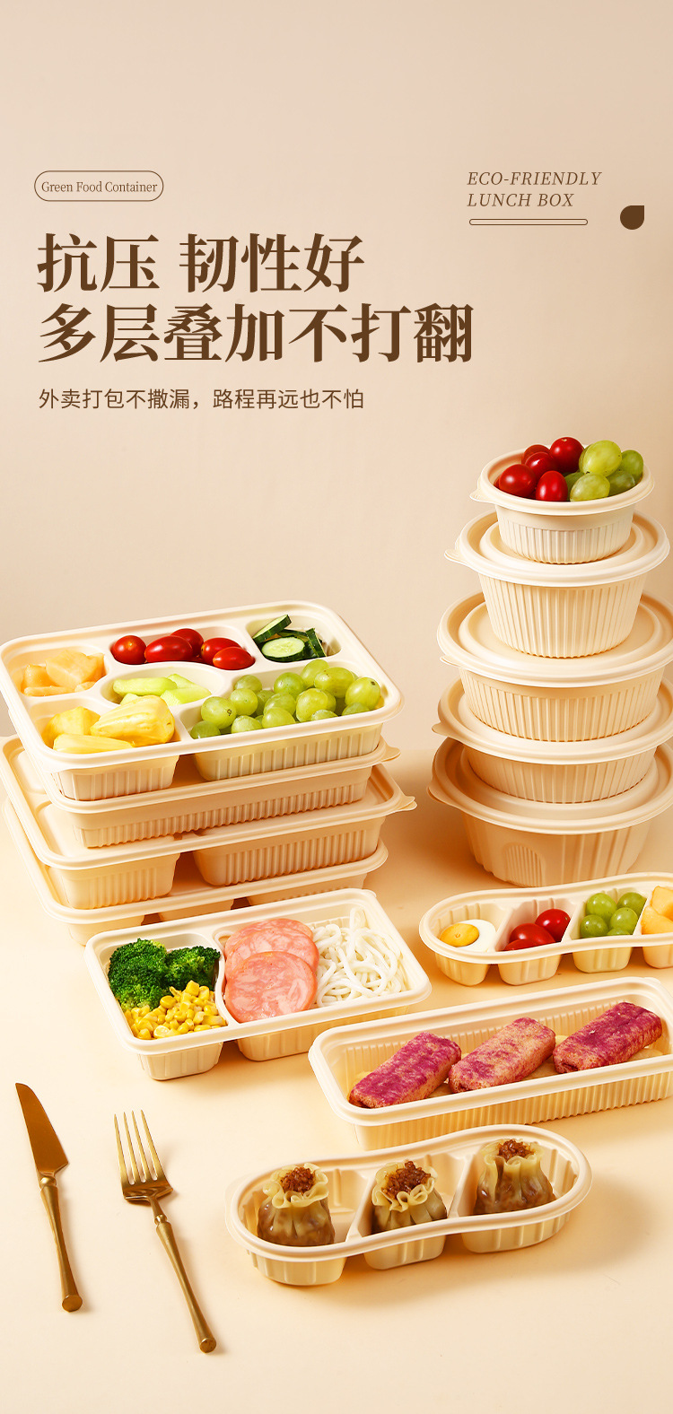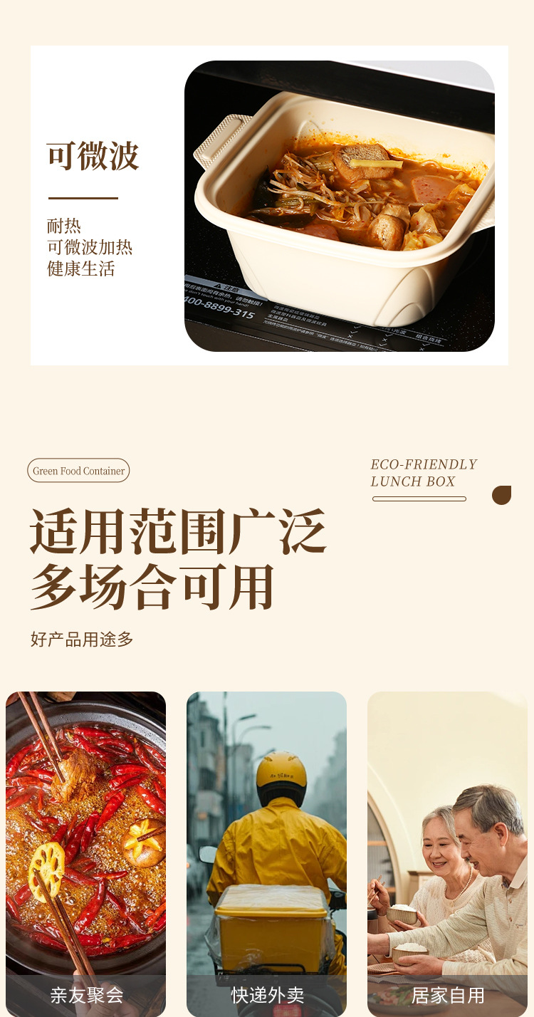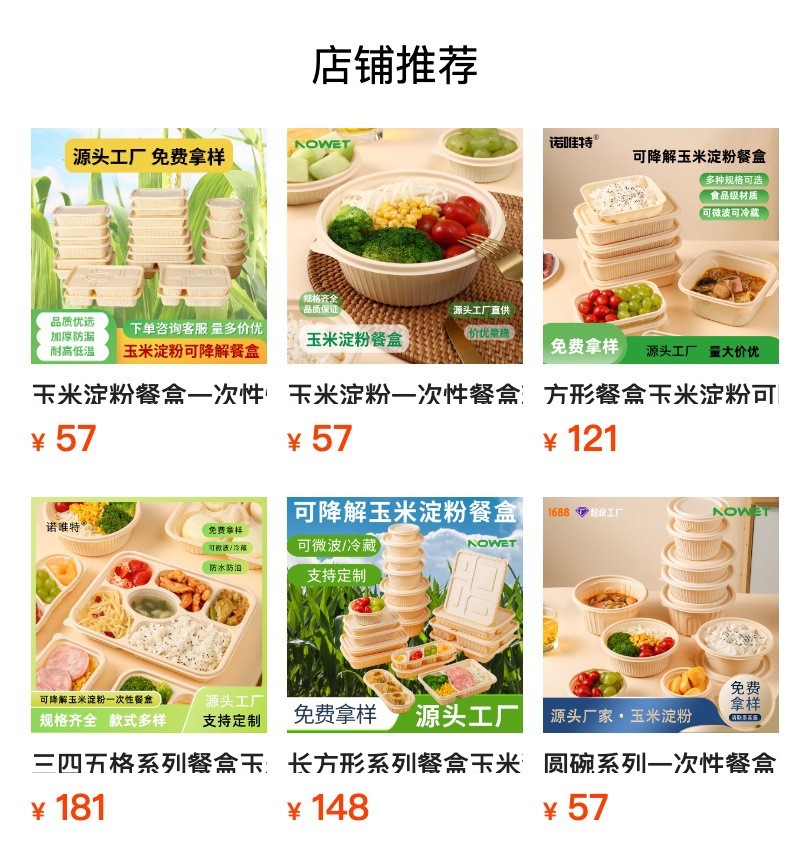 Одноразовая посуда из кукурузного крахмала, биоразлагаемая, для упаковки на вынос, круглые и квадратные, для ланч-боксов, кейтеринга, пригодна для микроволновки