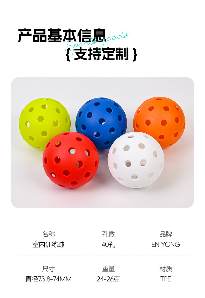 Уличный эластичный мяч для пиклбола на 40 отверстий, многоцветный, тренировочный полый пластиковый мяч