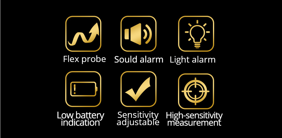 5. 将传感器靠近已知的泄漏源,泄漏大小指示灯会随着快速滴答声而增加。以上步骤确保设备正常工作,现在设备可以使用了。如果电池电量充足,但传感器接近已知漏液而无任何反应,请不要使用仪器,请返厂维修。 |