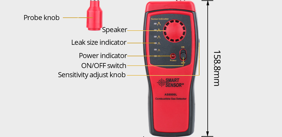 6. 随着滴答速度的增加,泄漏大小指示器将从下到上亮起,作为更大的可燃浓度。 |