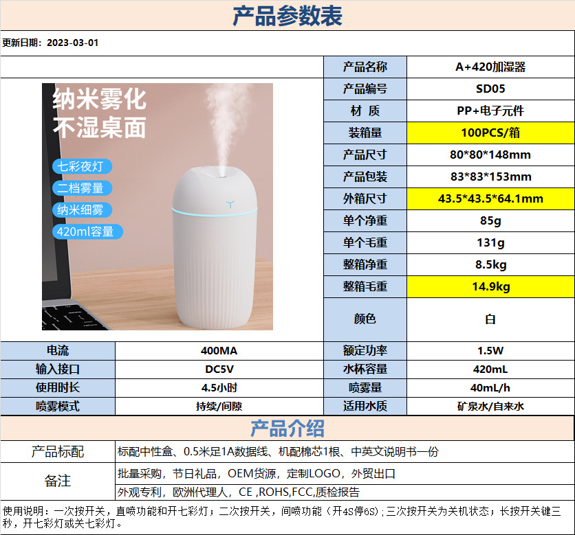 Воздушный увлажнитель для дома, маленький, мини, USB, портативный, распыление, автомобиль, офис, увлажнение, тихий, аромотерапия для спальни