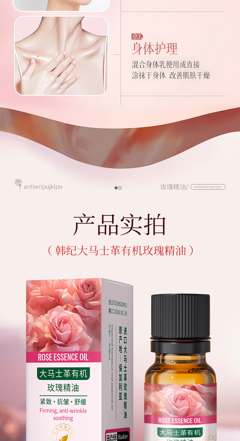 Корейское дамасское органическое масло розы для лица и всего тела, увлажняющее, подтягивающее, против морщин, успокаивающее массажное масло