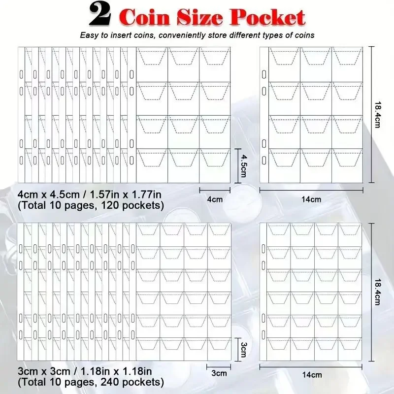 - 480-grid Coin Loose-leaf Book : The 480-grid coin loose-leaf book provides ample space for your valuable coin collection, keeping them safe and organized.