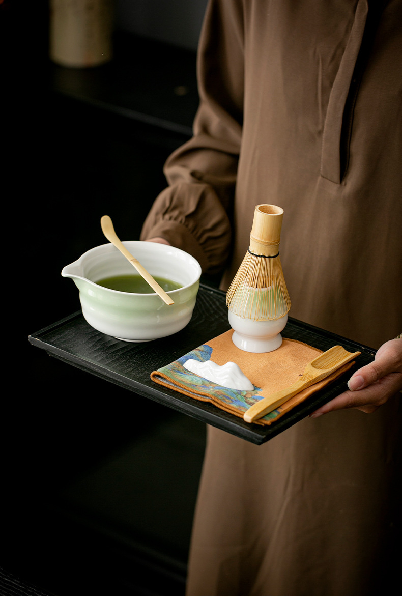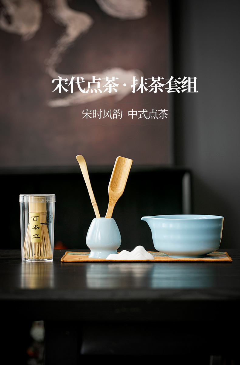 亚马逊ins风日式带嘴陶瓷抹茶碗 宋代点茶工具茶筅立百本立