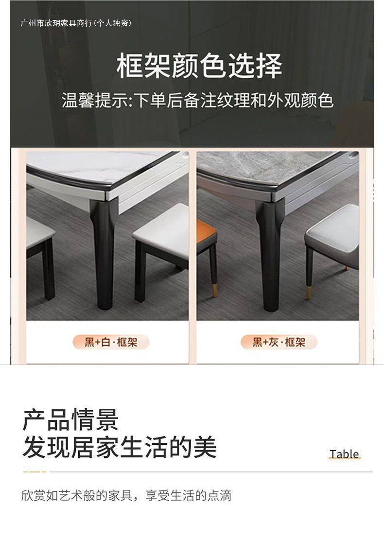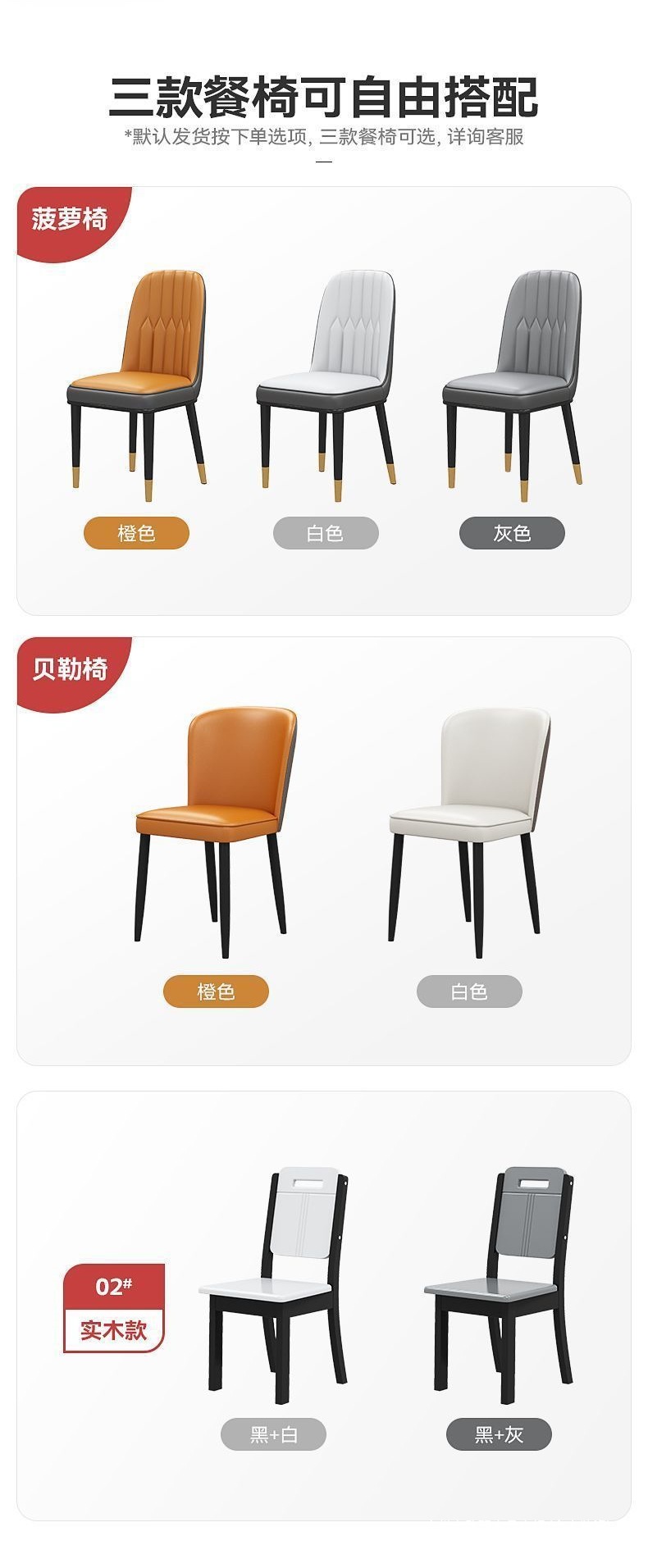 ![]() | Ya black and white frame (12mm slate snow mountain white light) | 1.2m dining table + 6 chairs (leather chairs) | ¥726.0 / ≈ 8 745 ₽ | 999 | 5860659324148 | |