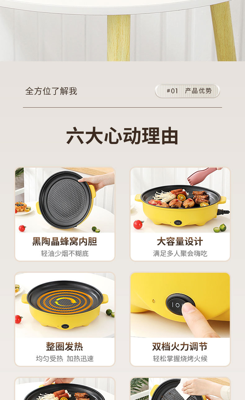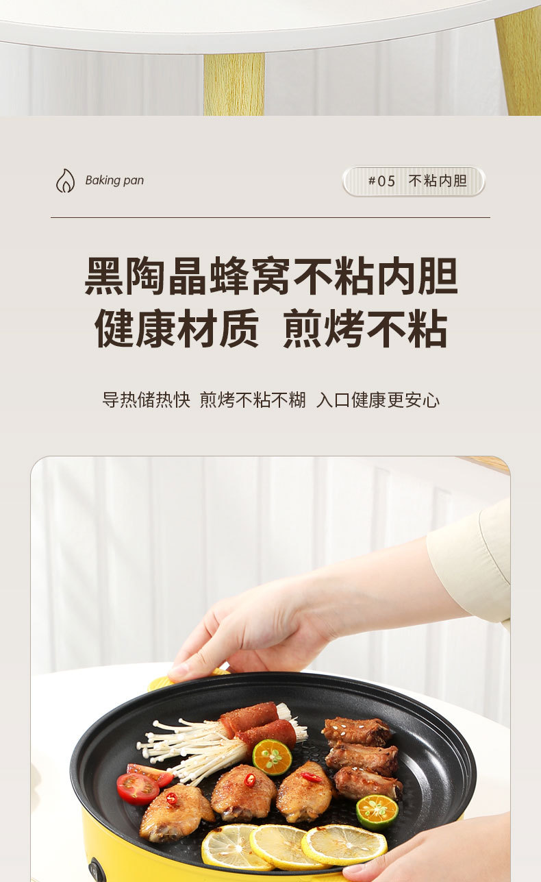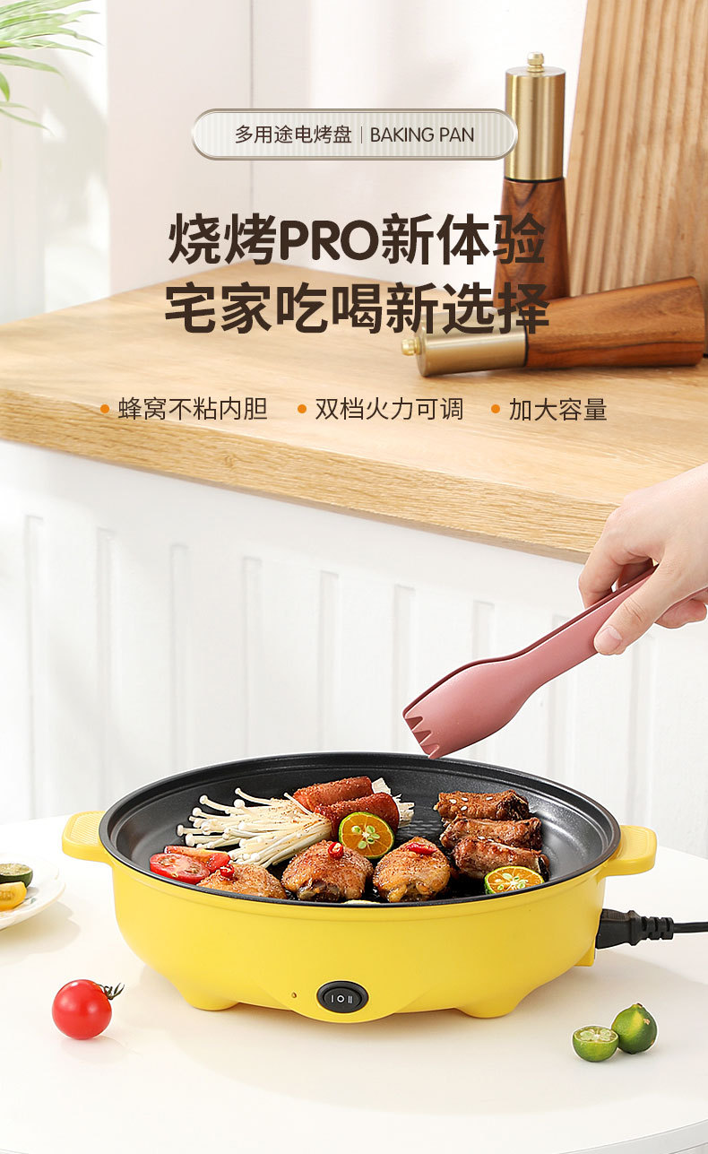 Электрическая сковорода Honeycomb с полным круговым нагревом, интегрированный гриль и горячий горшок