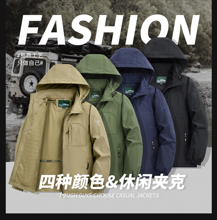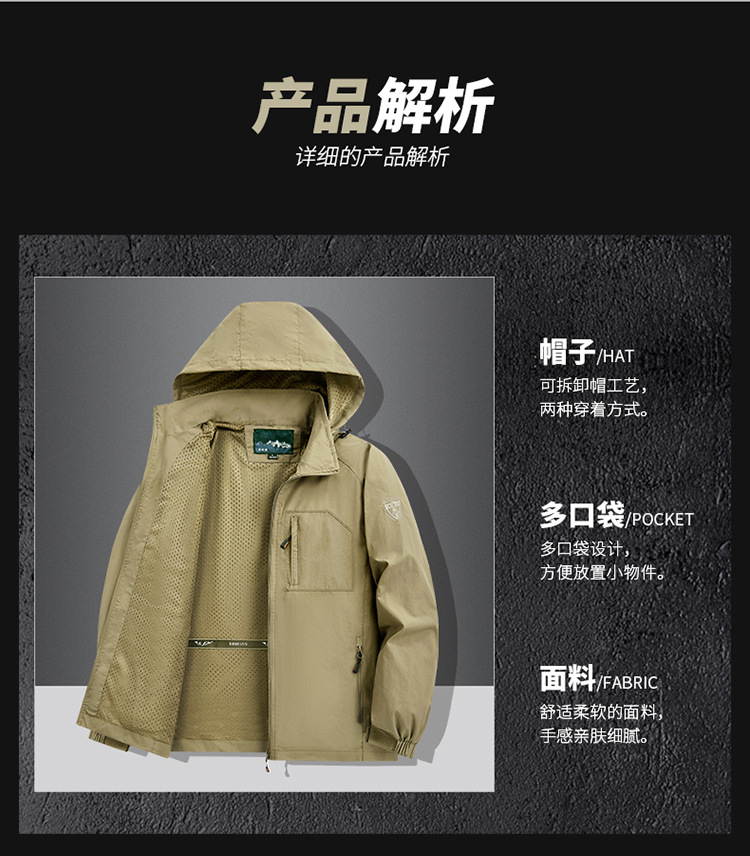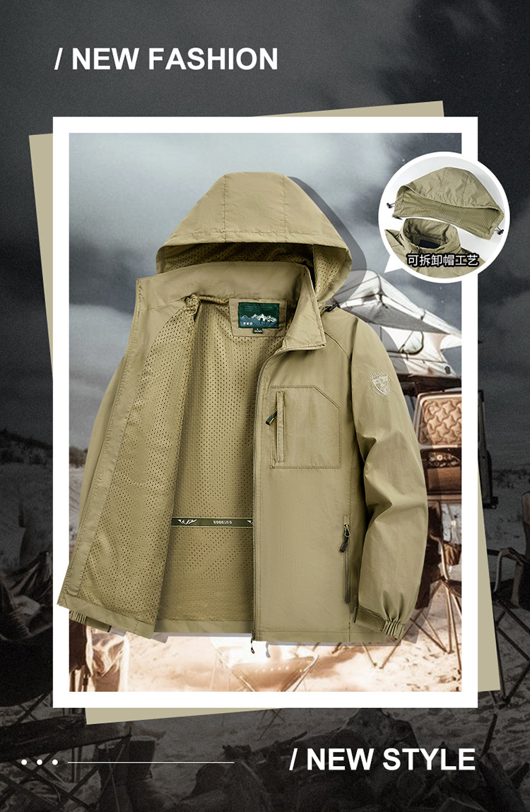 Спортивная куртка для мужчин весна-осень, повседневная, для среднего и пожилого возраста, с отстегивающимся капюшоном, ветро- и водонепроницаемая