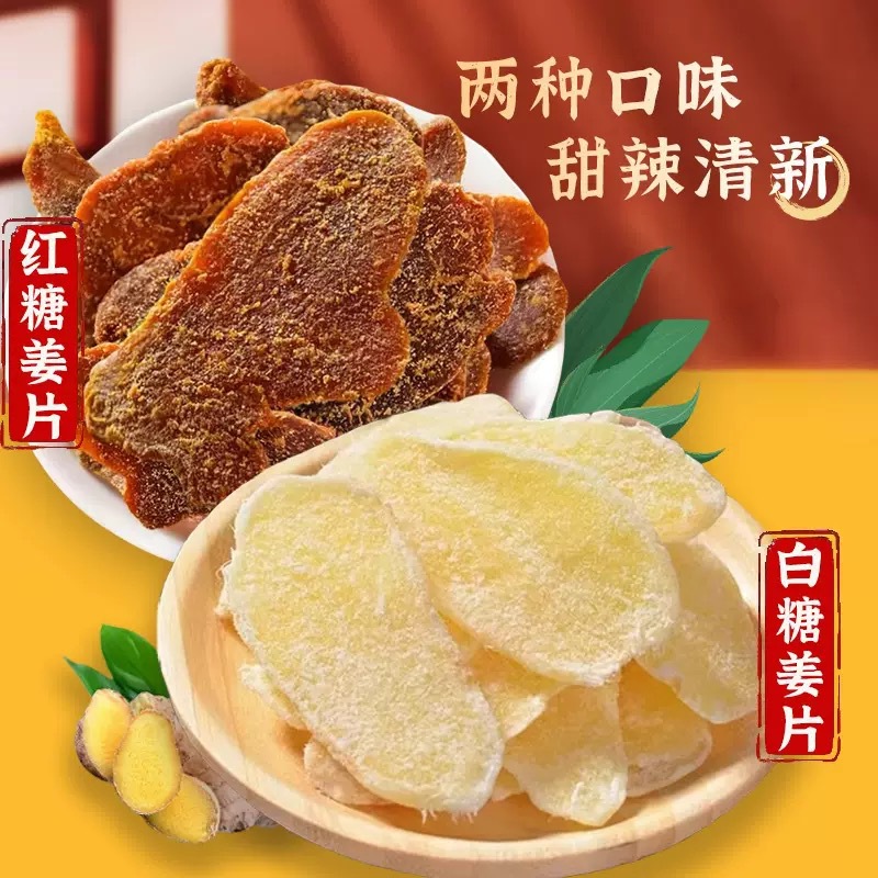 Оптовая продажа пакетированных ломтиков имбиря с коричневым и белым сахаром 500г, консервированные, замоченные в воде для питья, повседневные закуски интернет-знаменитостей