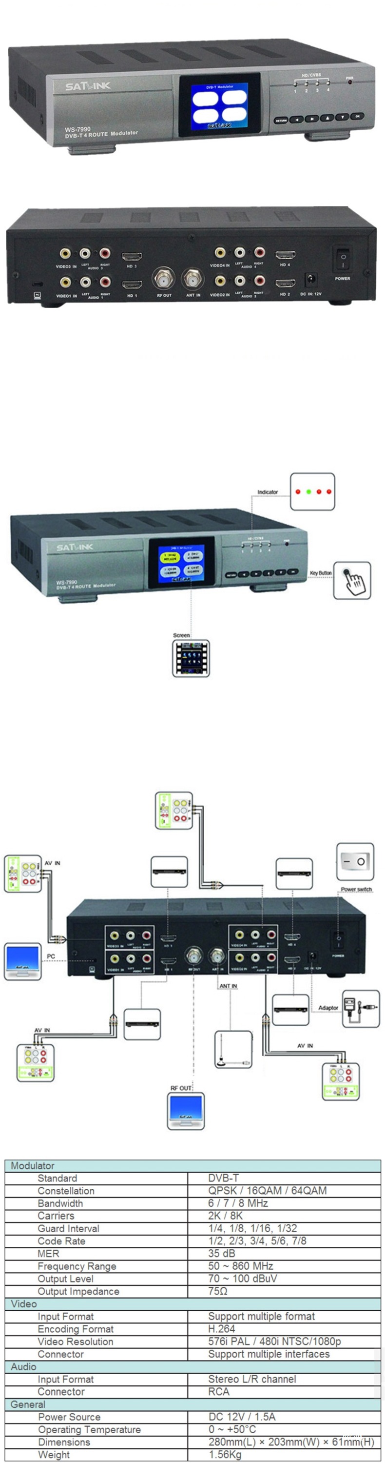 Satlink WS-7990 четырехканальный HD DVB-T модулятор, COFDMWS-6990, комбинированный ТВ-узел