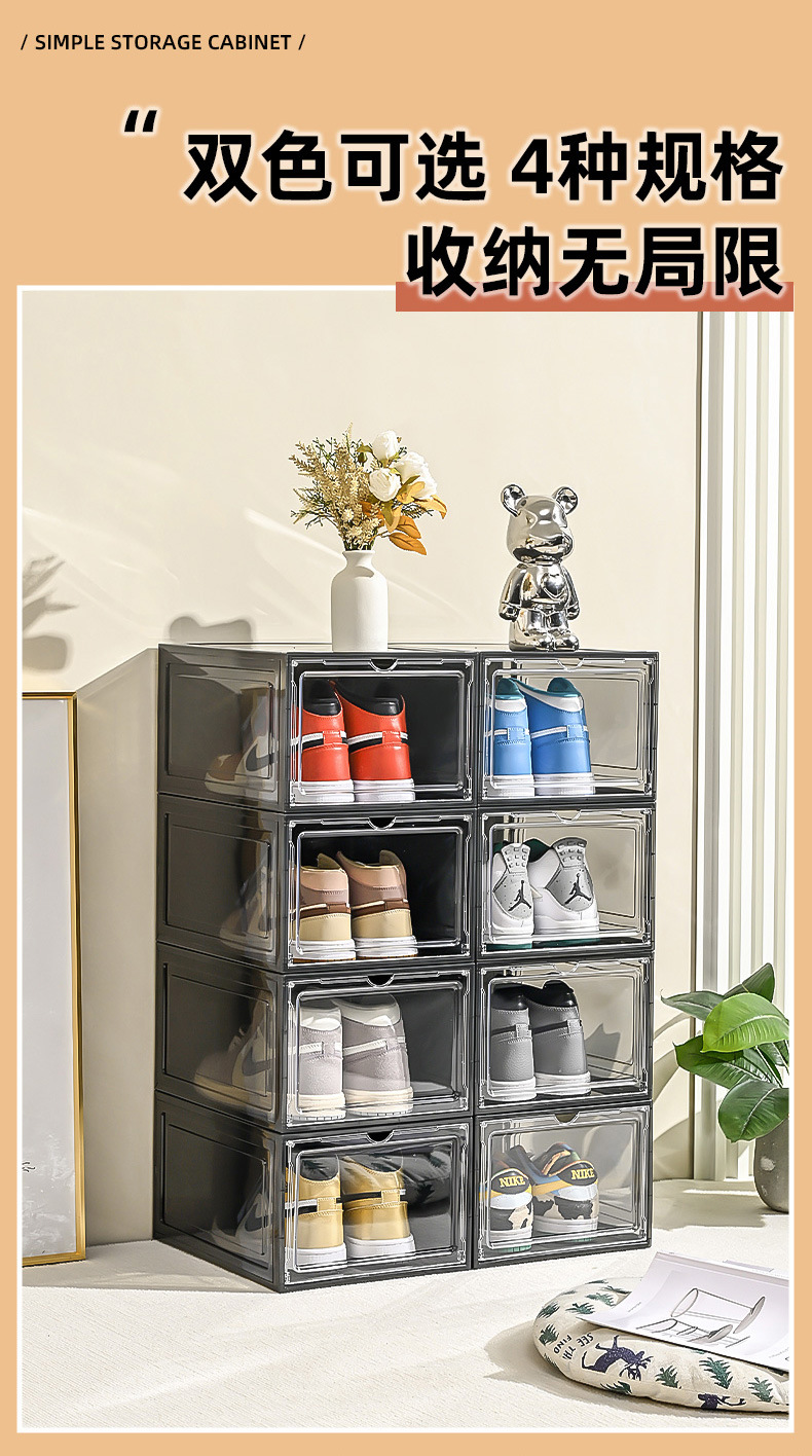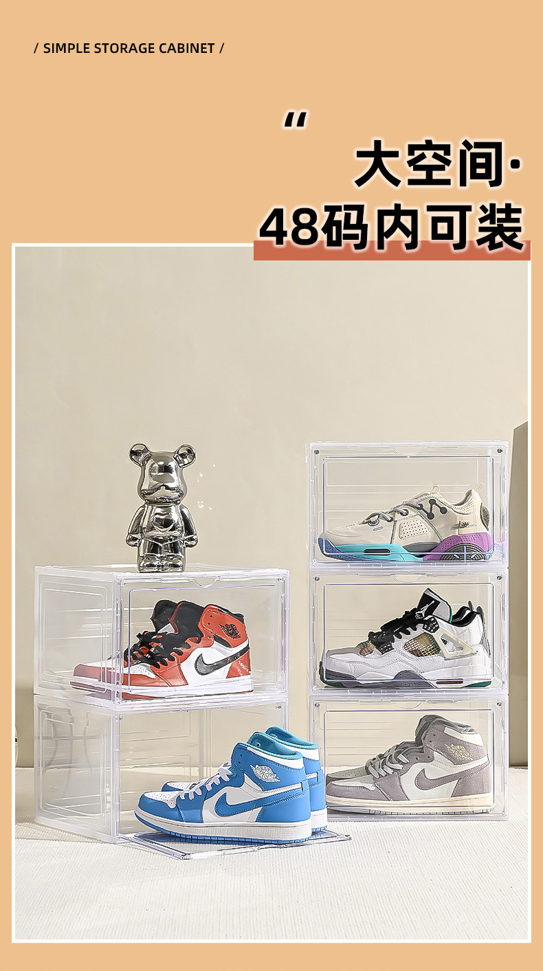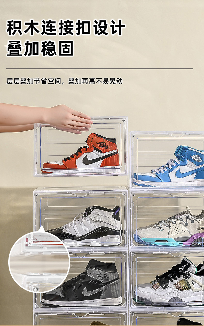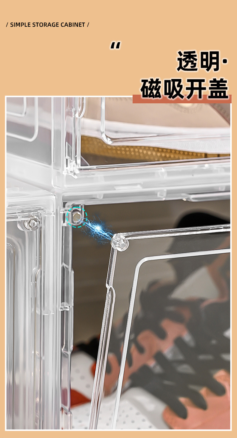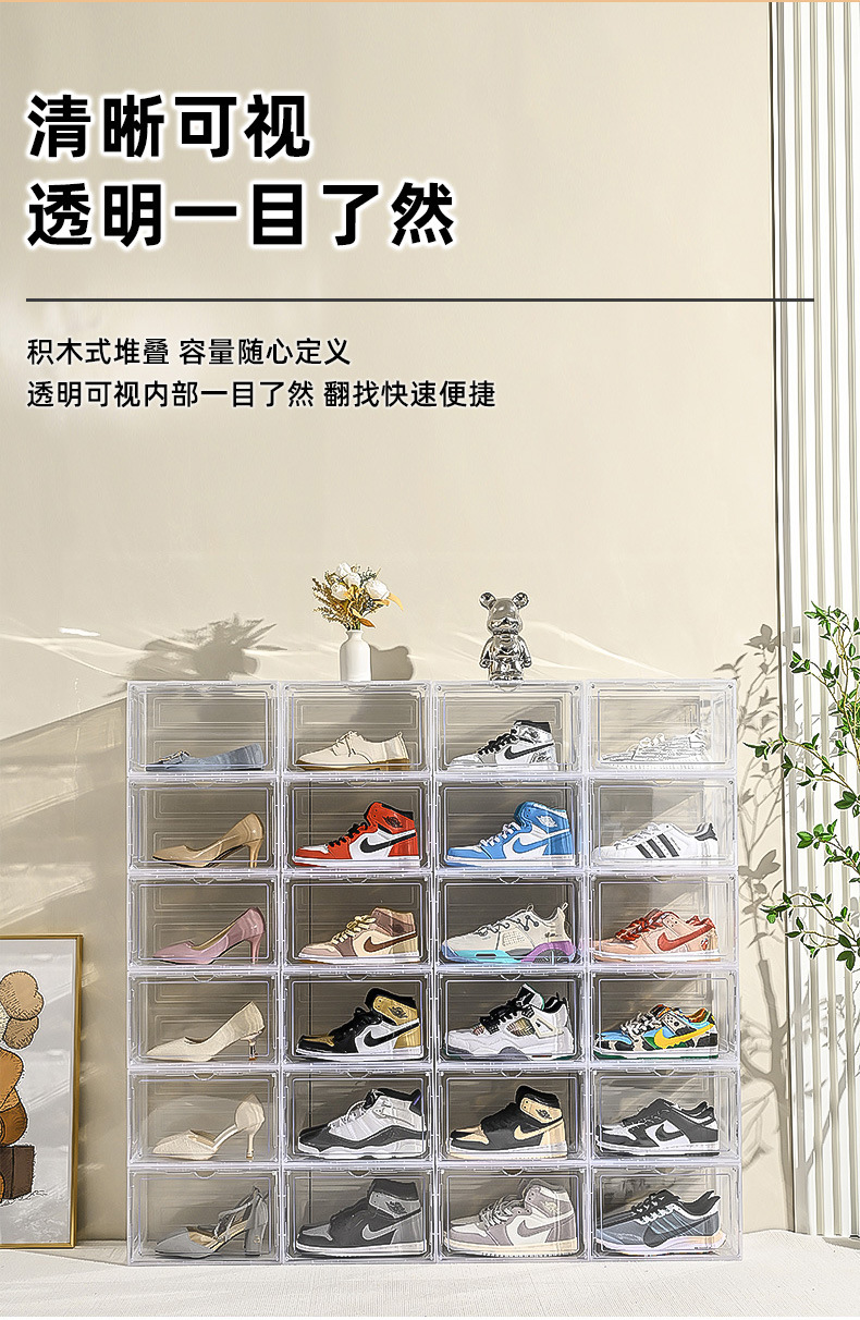 Прозрачная складная коробка для обуви, домашний артефакт для хранения, магнитное притяжение, штабелируемый, пылезащитный пластиковый шкаф