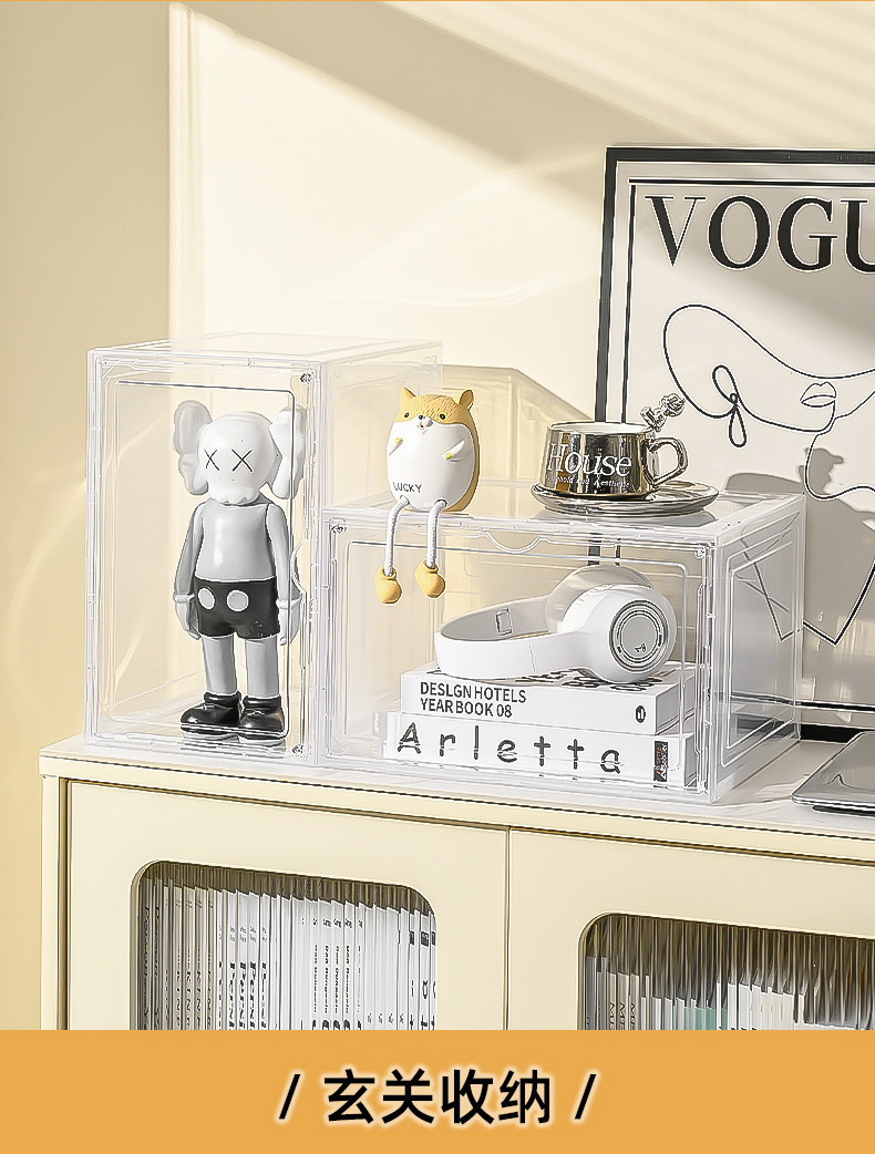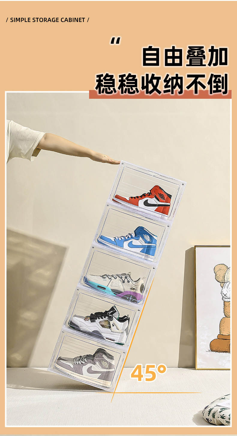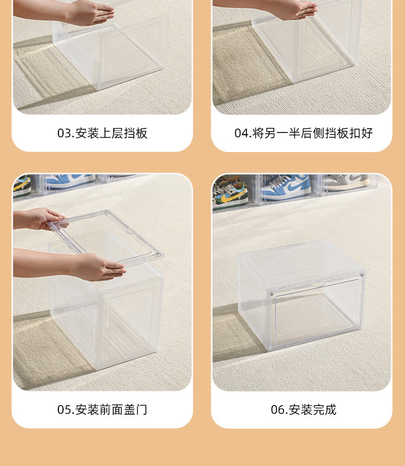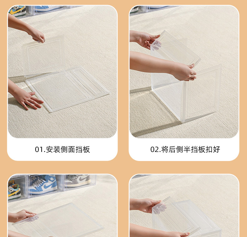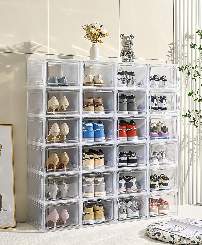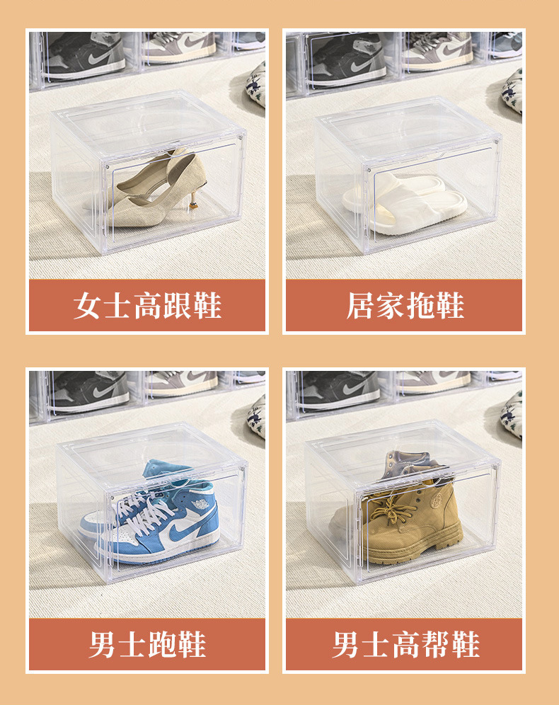 Прозрачная складная коробка для обуви, домашний артефакт для хранения, магнитное притяжение, штабелируемый, пылезащитный пластиковый шкаф
