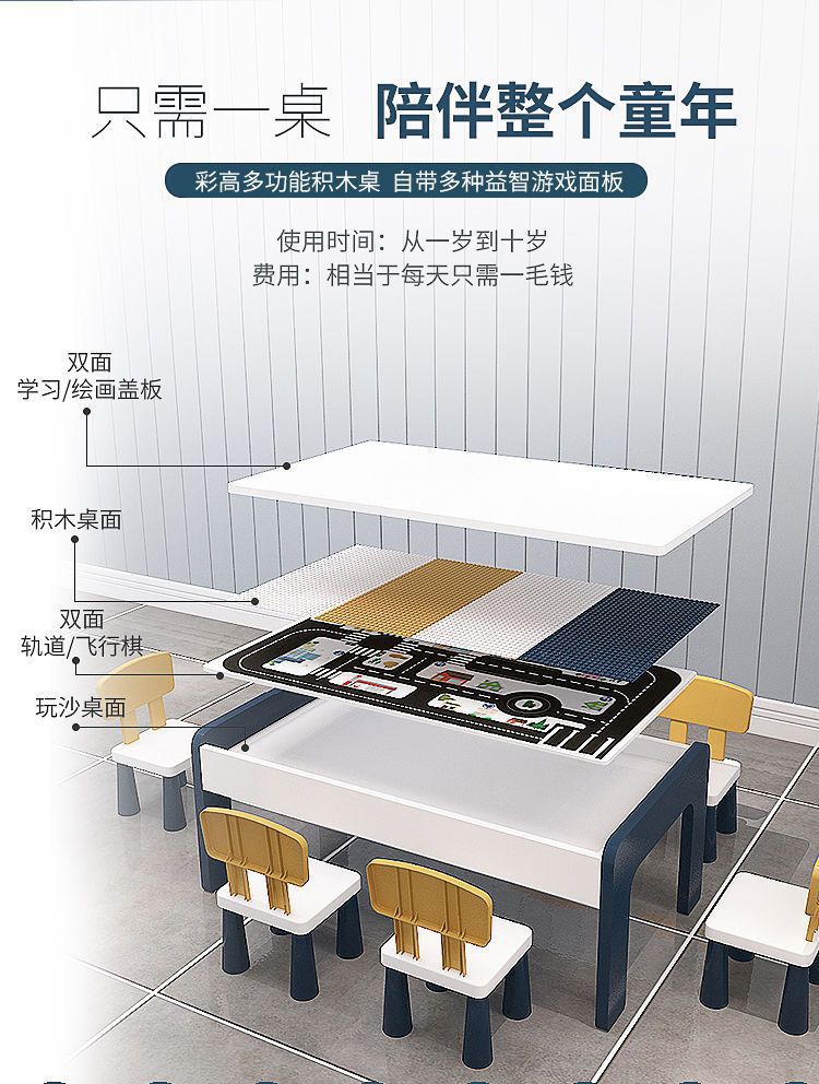 Детский стол для строительных блоков, многофункциональный стол для мальчиков и девочек, стол для сборки крупных строительных блоков, обучающий стол для малышей
