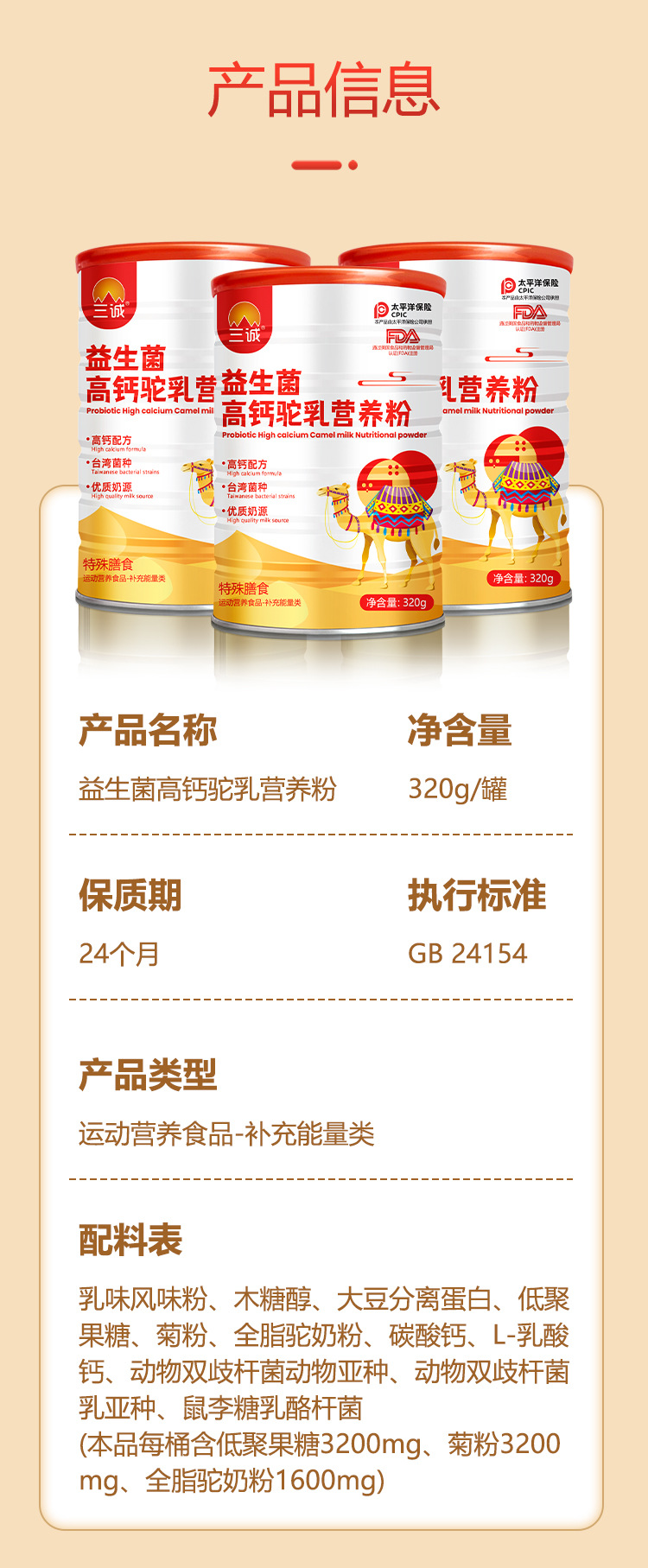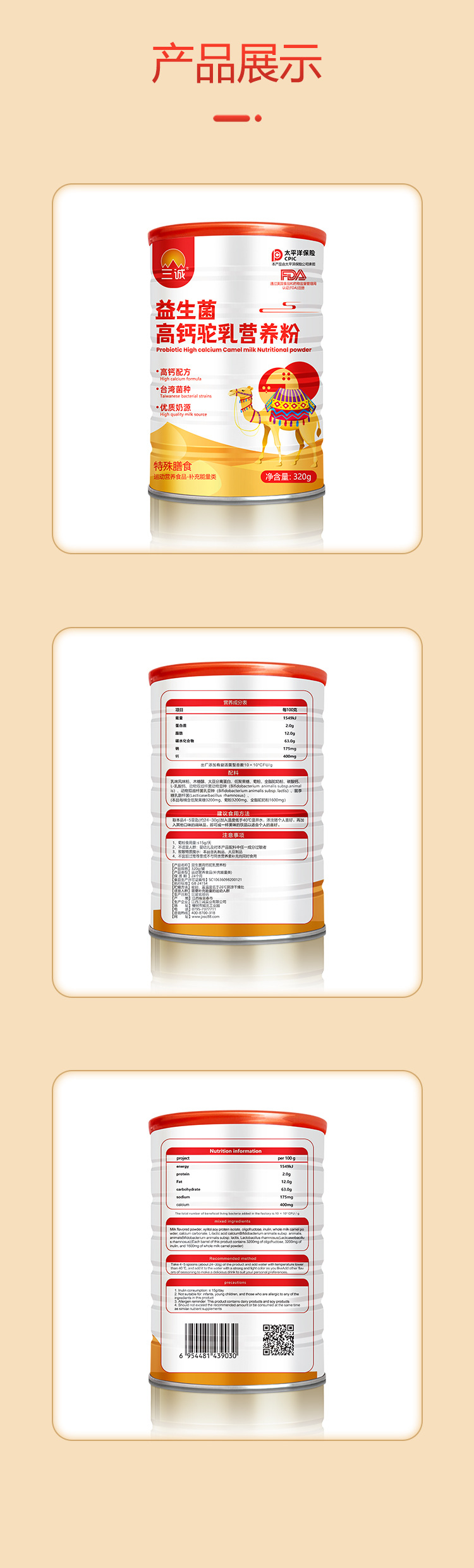Название продукта Probiotic high calcium camel milk nutritional powder