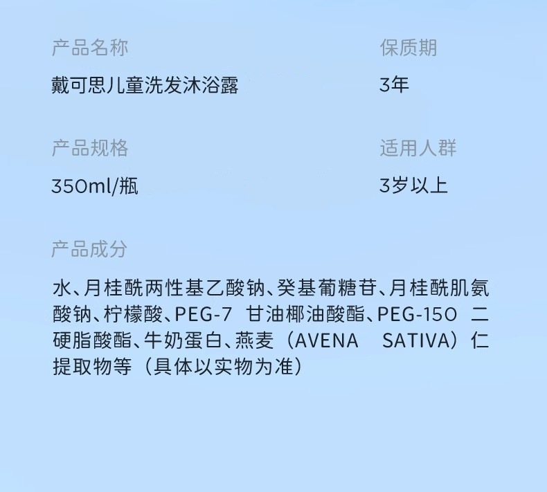 ![]() | Daikes children's shampoo and shower gel 350ml*1 bottle | ¥12.8 / ≈ 155 ₽ | 9999 | 5862639389657 |