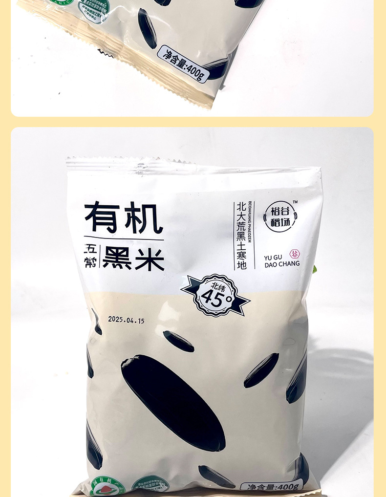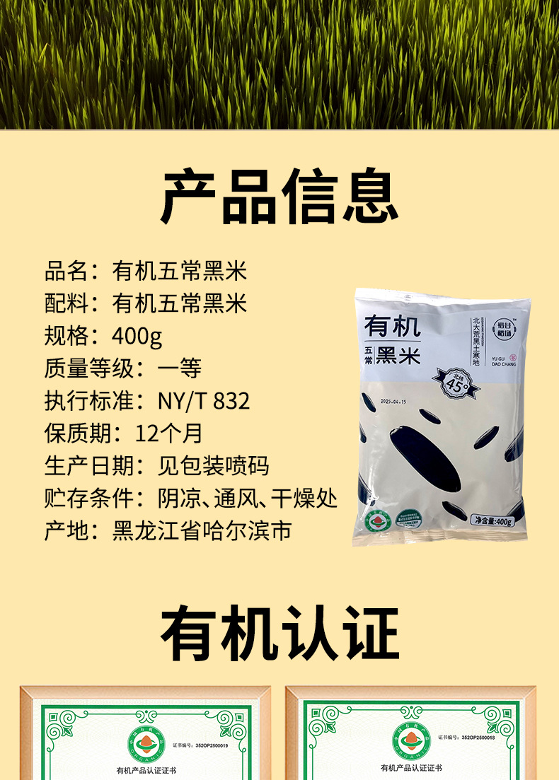 Органический черный рис из Вучаня на северо-востоке 400г*2 пакета коричневого риса, цельные зерна, деревенские крупы, черный рис, органический рис