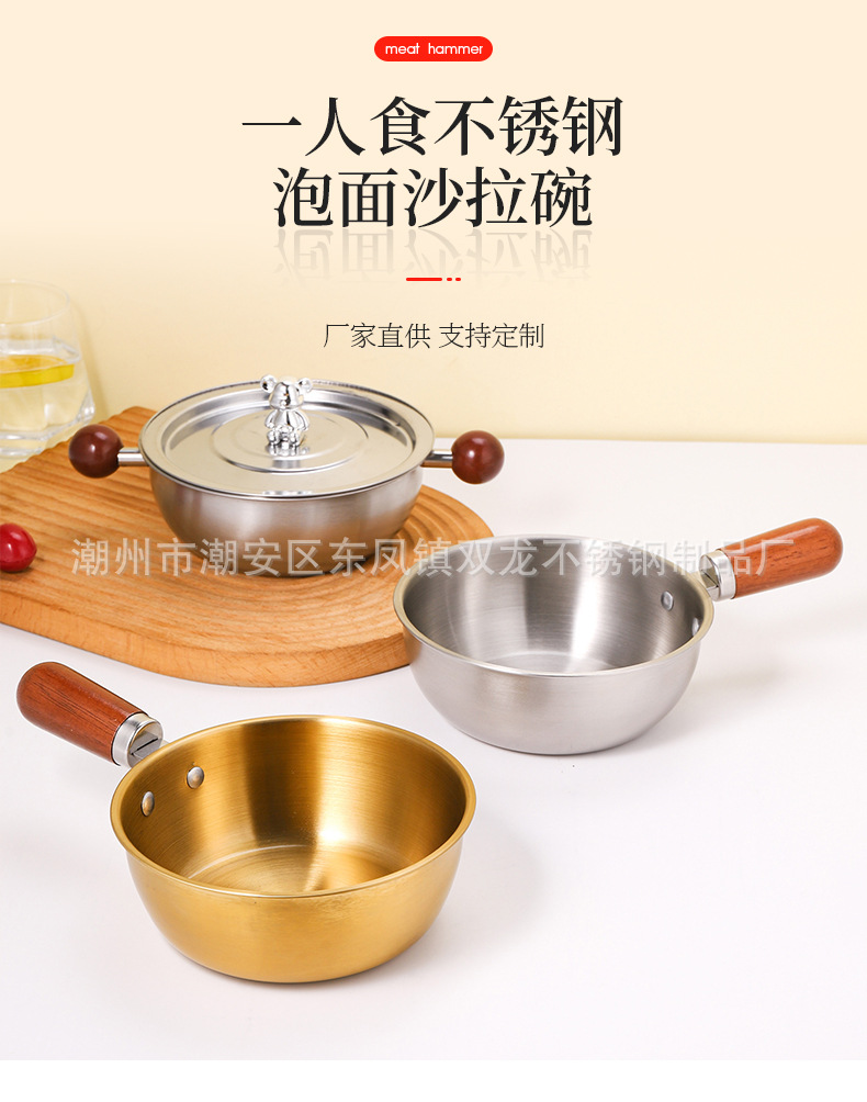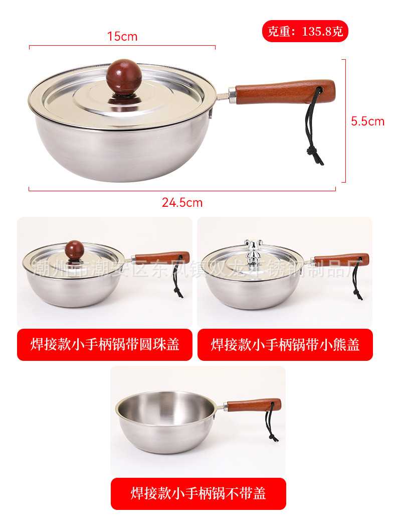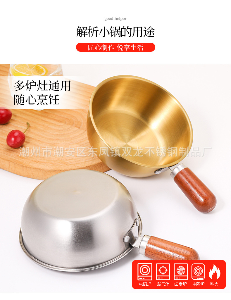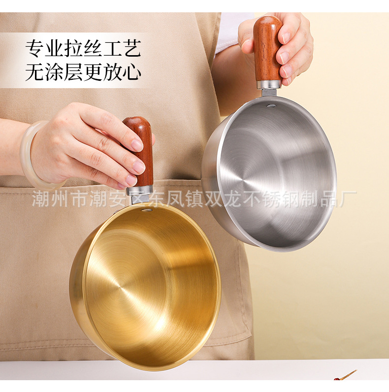 Кросс-бордерная мини-сковорода с ореховой ручкой из нержавеющей стали для лапши салата запеченного риса добавки молока японский стиль на одного человека