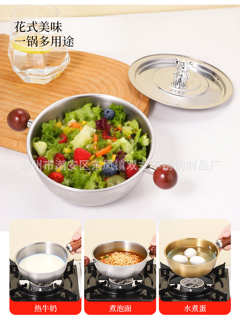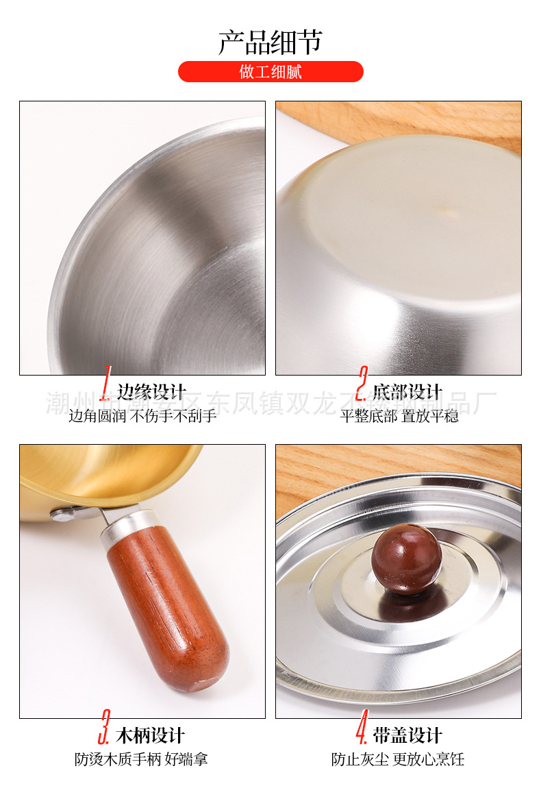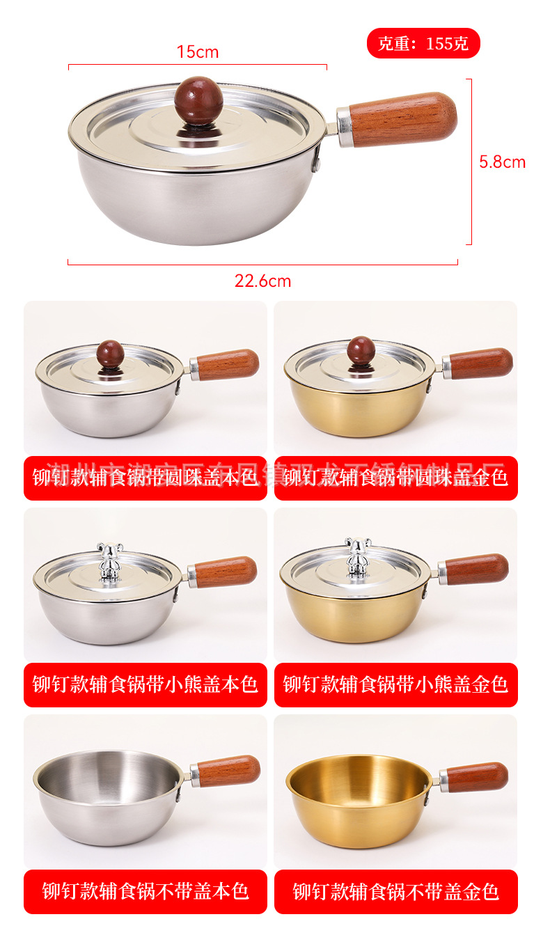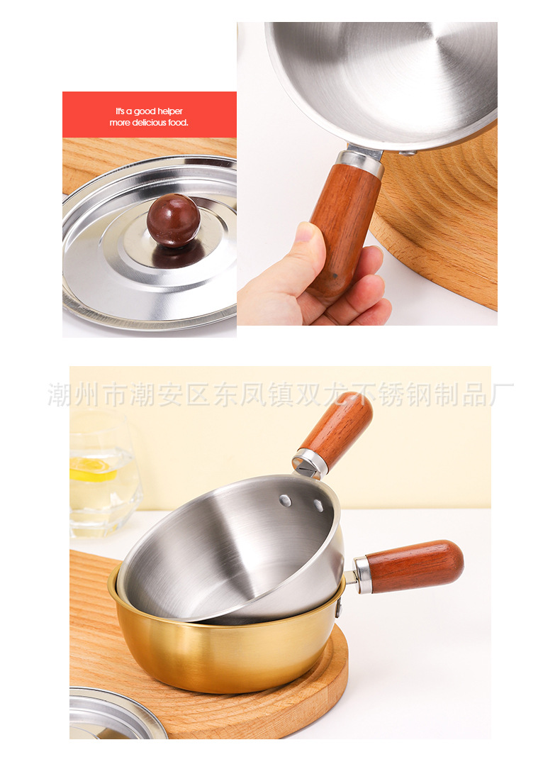 Кросс-бордерная мини-сковорода с ореховой ручкой из нержавеющей стали для лапши салата запеченного риса добавки молока японский стиль на одного человека