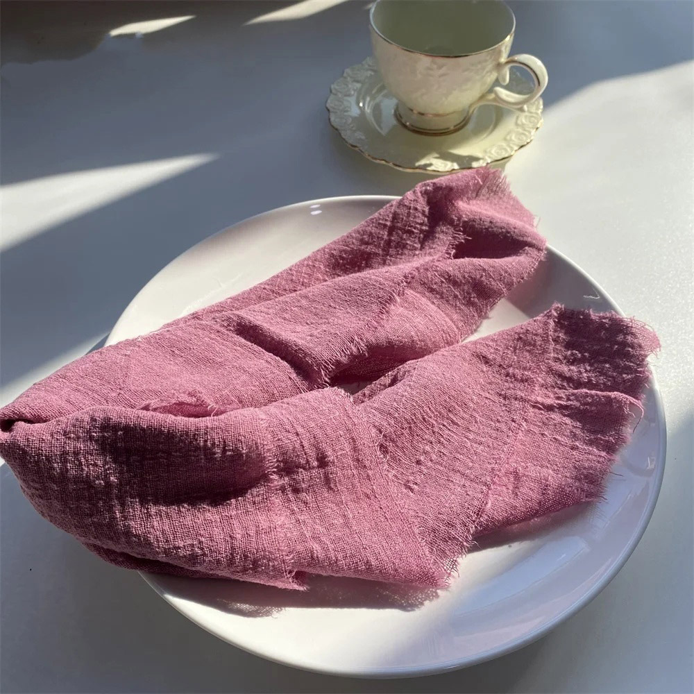 Скатерть из хлопка с бахромой, однотонная, с необработанными краями, для свадьбы и вечеринок, помятый материал, производитель Amazon