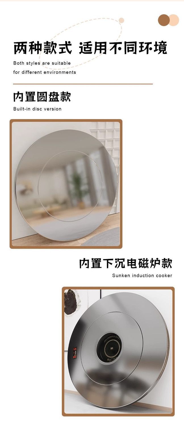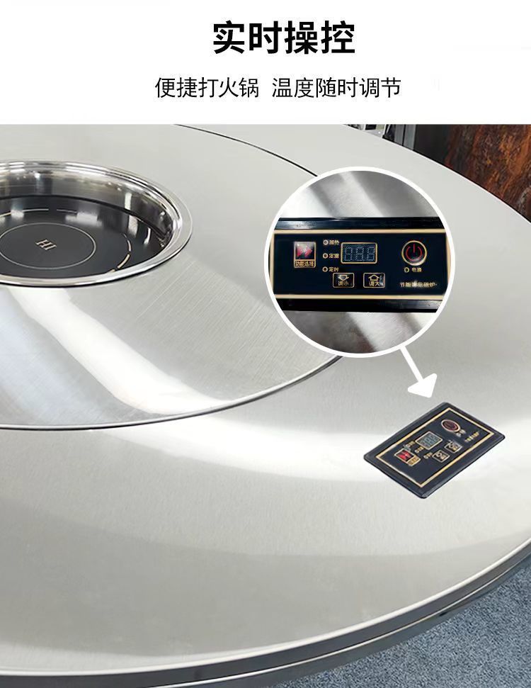 Экстра толстый стол для хот-пота из нержавеющей стали 304 с индукционной плитой, вращающийся круглый стол с встроенным поворотным механизмом, многофункциональный обеденный стол