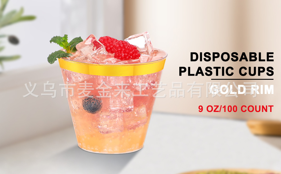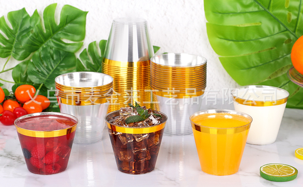 Одноразовый пластиковый стакан 9oz с горячим тиснением для иностранного вина и западной еды, серебристый, розовое золото, для мороженого