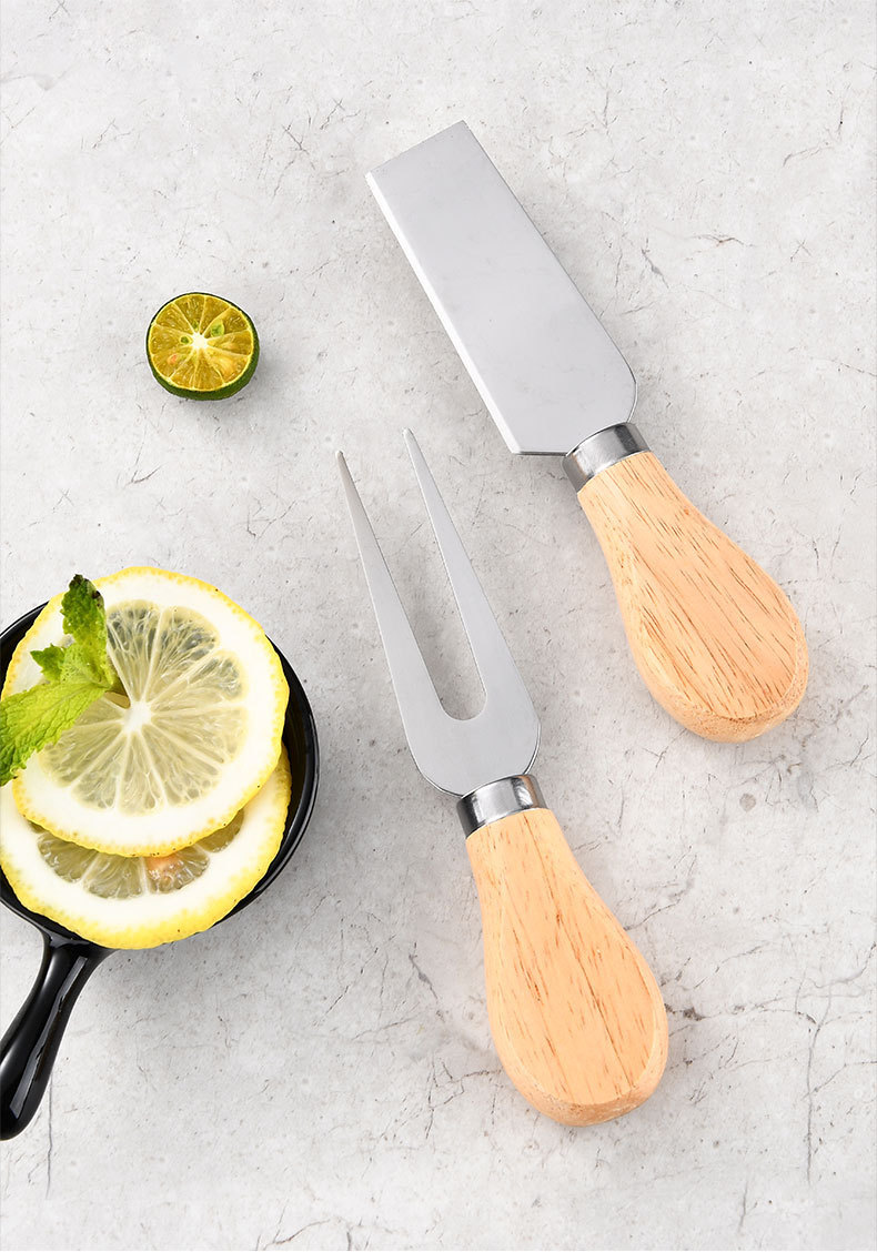 Нож для сыра с ручкой из дуба, набор для подарка, нож для масла и вилка из нержавеющей стали