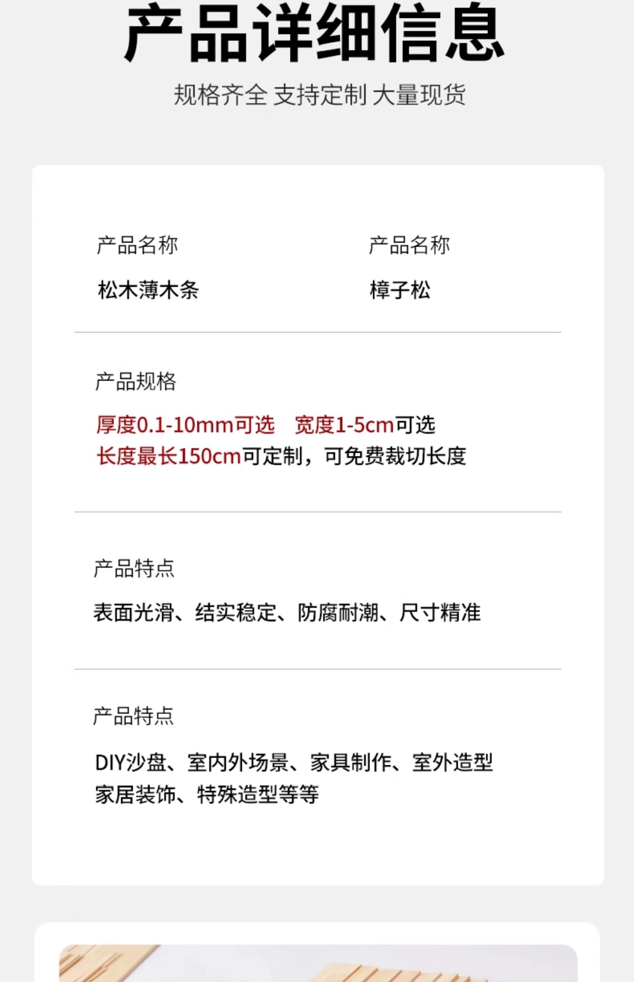 📦 | Pine original color thin wood strips 0.3*5*50*5 pieces | ¥7.9 / ≈ 95 ₽ | 9974 | 6088997223865 | |