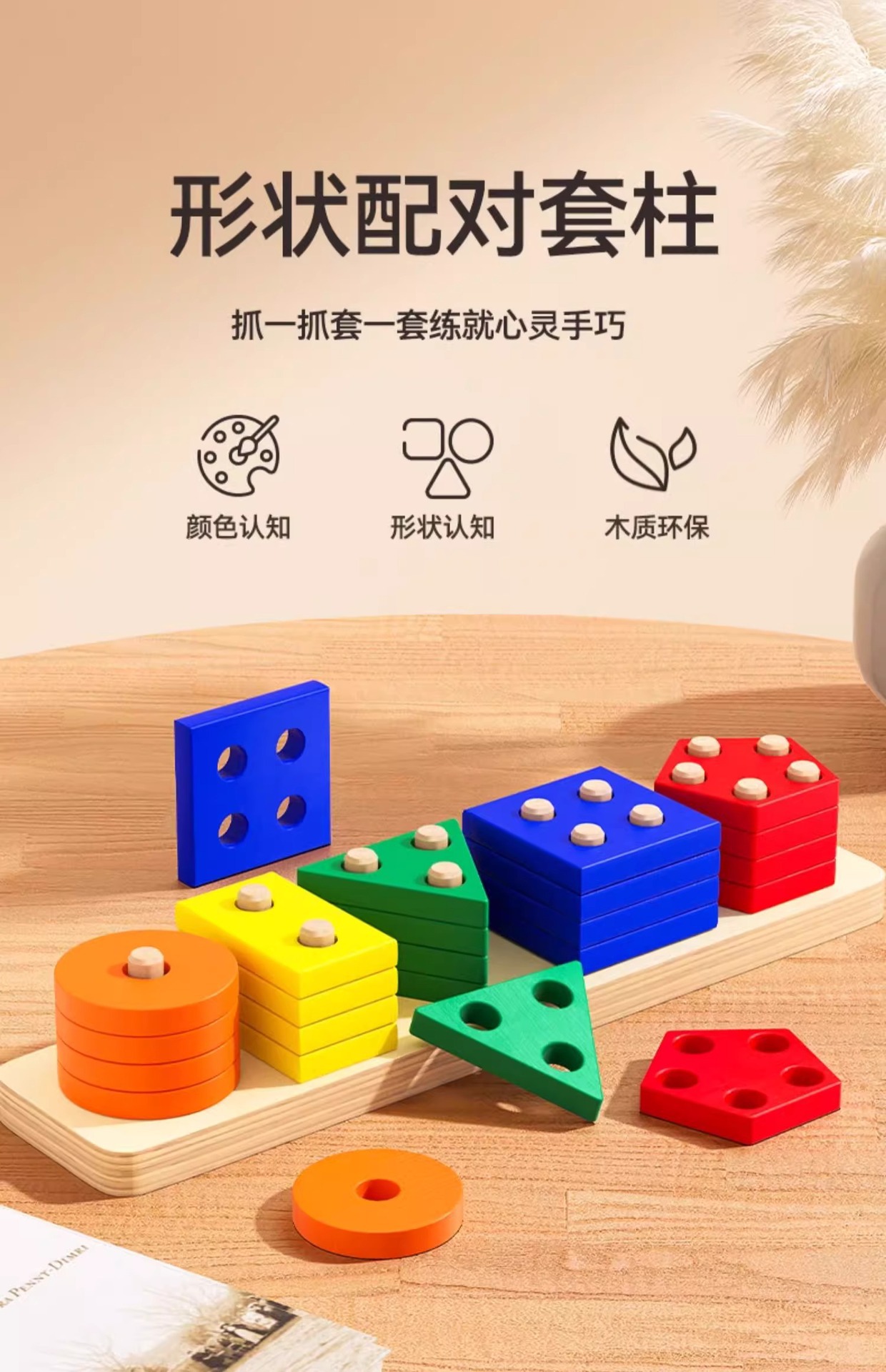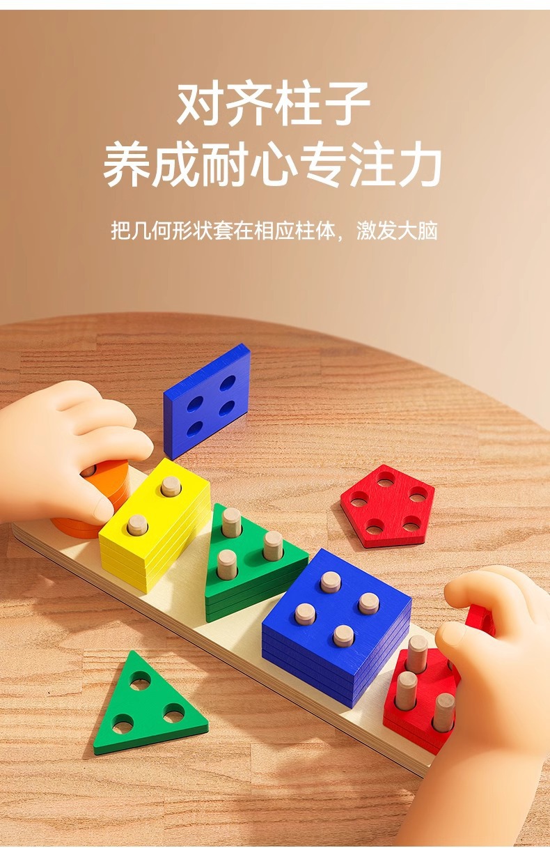 Международный деревянный геометрический набор из пяти комплектов, цветовая форма, когнитивное соответствие и разборка, развивающие игрушки для детей