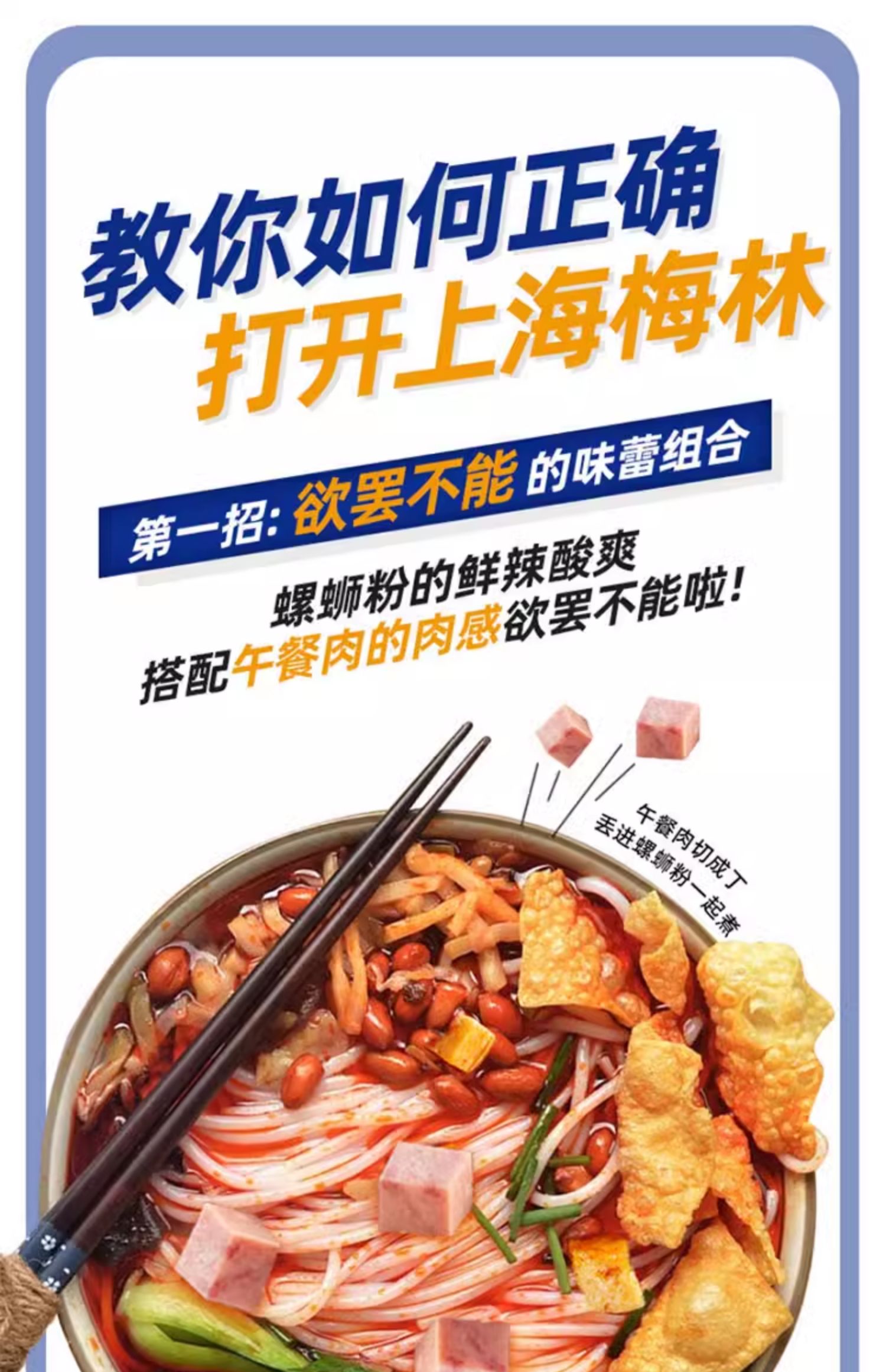 Консервированное мясо для обеда Шанхай Мэйлин 198г Ингредиенты для острого супа, острые лапши с улитками в сочетании с готовой ветчиной